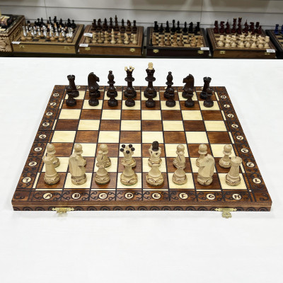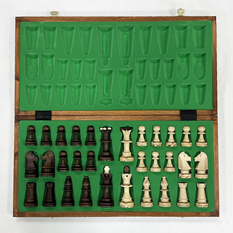 Фигуры также заслуживают отдельного внимания. Они изготавливаются из граба и даже после сотен игр будут выглядеть как новые. Чтобы не портить шахматную доску, снизу фигуры обтягиваются мягким материалом. Каждый узор на фигуре также наносится вручную польскими мастерами.