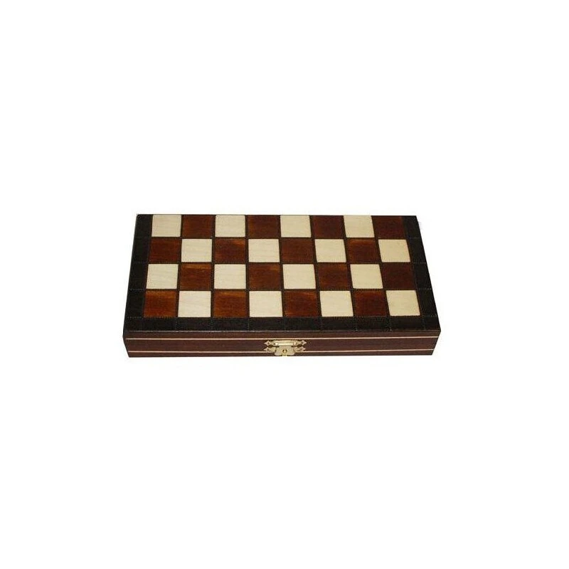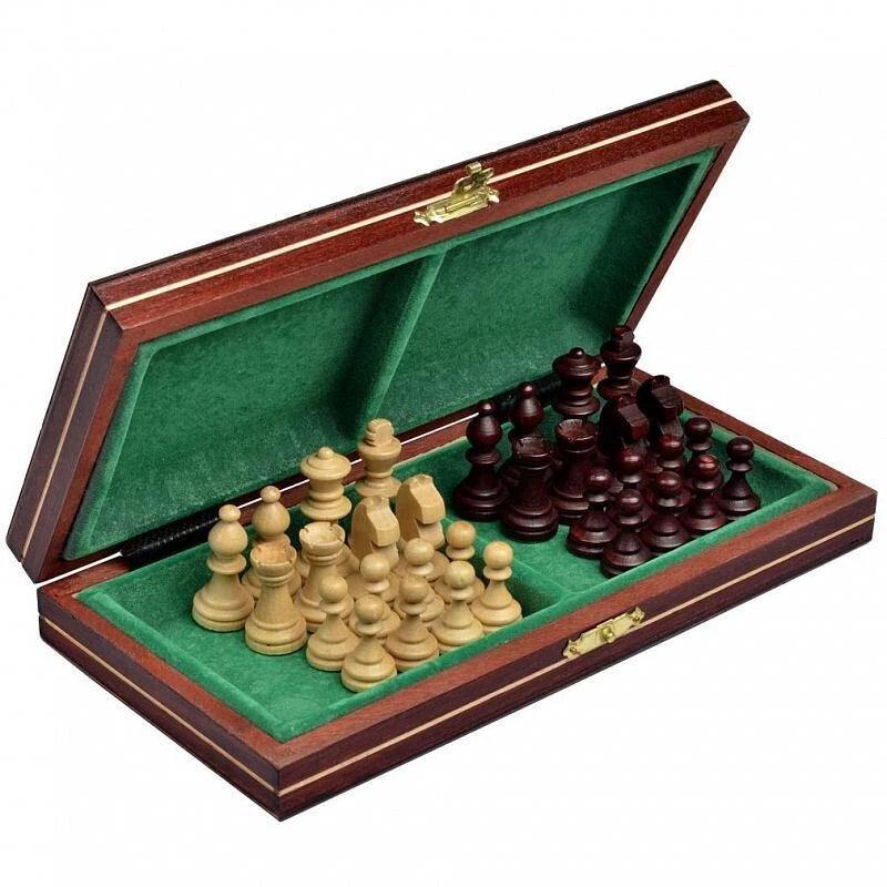Шахматы "Магнитные малые", Wegiel – набор классической настольной игры, который прекрасно подходит для путешествий, пикников, да и просто повседневного домашнего использования. За счет того, что фигуры примагничиваются к доске, играть в шахматы таким комплектом удобно практически в любых условиях. Декоративное оформление элементов комплекта, сделанных из натуральной липовой древесины, выполнено в технике маркетри. Благодаря этому на доске не только приятно играть – ее приятно рассматривать, ведь она играет разными оттенками природного цвета древесины. Доска, скрепленная надёжными медными петлями, имеет с внутренней стороны вставленный лоток с ячейками для фигур.