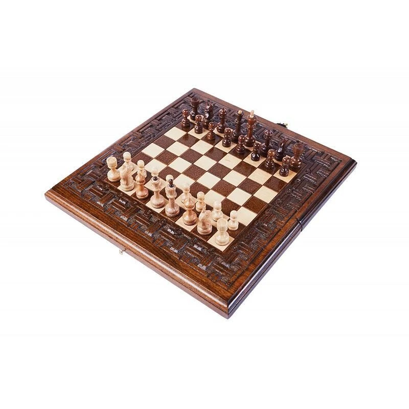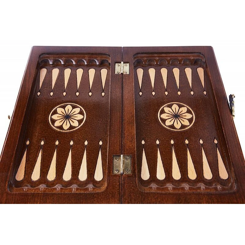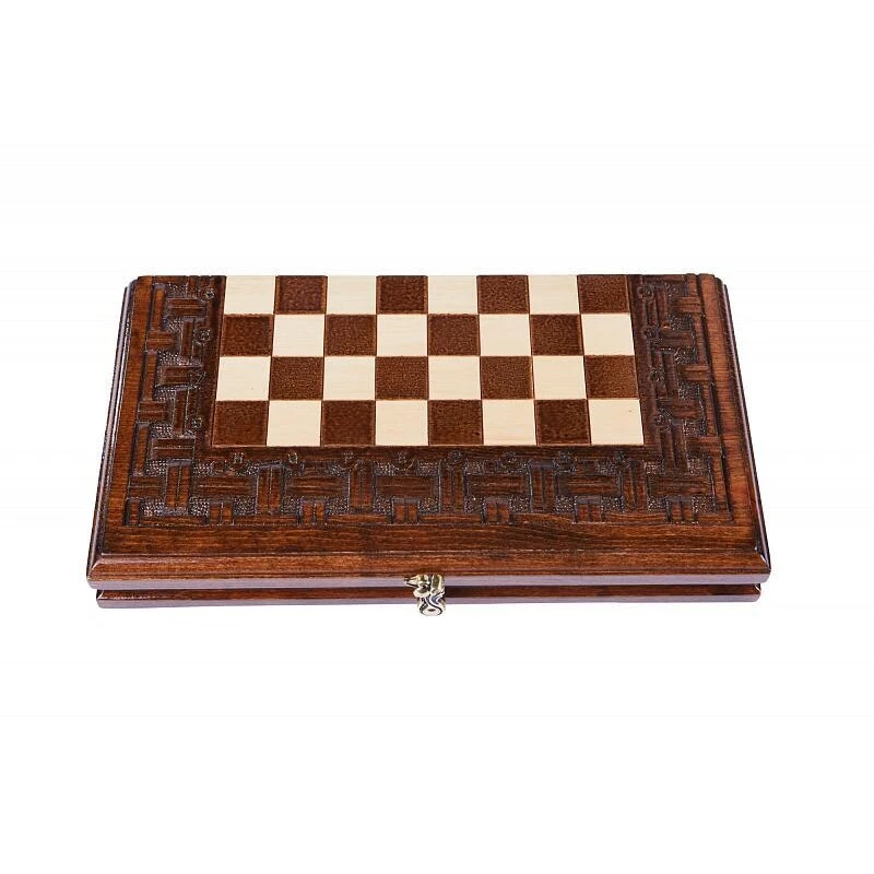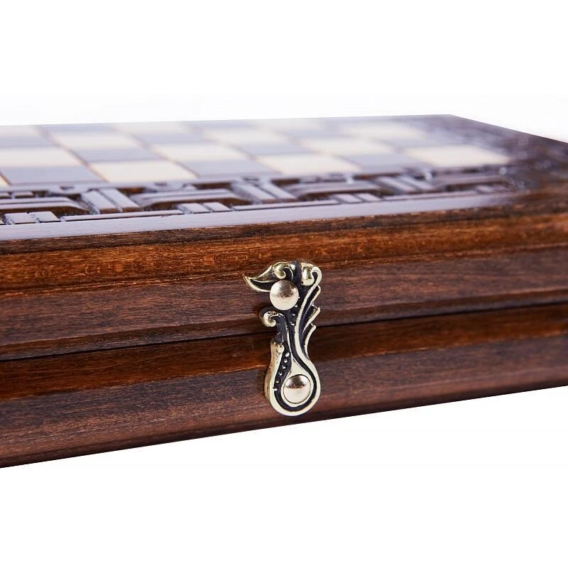 Один из самых красивых комплектов 2-в-1 в нашем ассортименте – набор шахматы + нарды «Армянский Узор». Элегантный и сдержанный, но при этом впечатляющий качеством выполнения и декоративной отделки, он может стать прекрасным подарком коллекционеру настольных игр. Доска, сделанная из натуральной буковой древесины, по краю украшена традиционным армянским узором. Фишки и фигуры классические. Они оснащены подложкой, защищающей доску от царапин. Также доска оснащена высококачественной и надежной бронзовой фурнитурой и покрыта лаком.