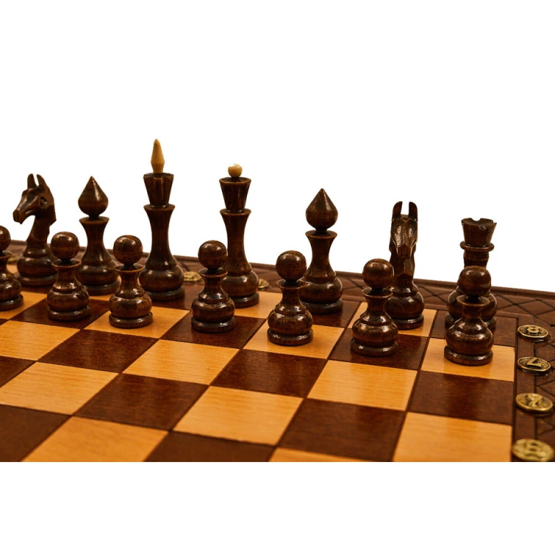 Шахматы + нарды резные «Эндшпиль 1» 40 Simonyan - гарантия интересных партий и радости для глаз. Друзья часто собираются за настольными играми, весело проводят время, разговаривают в процессе. Так и происходило у Арама Симоняна, который решил - почему бы не добавить сюда красоты. Постепенно мастер постигал искусство резьбы по дереву и созданию прекрасных форм, что и видно при первом взгляде на данную доску.