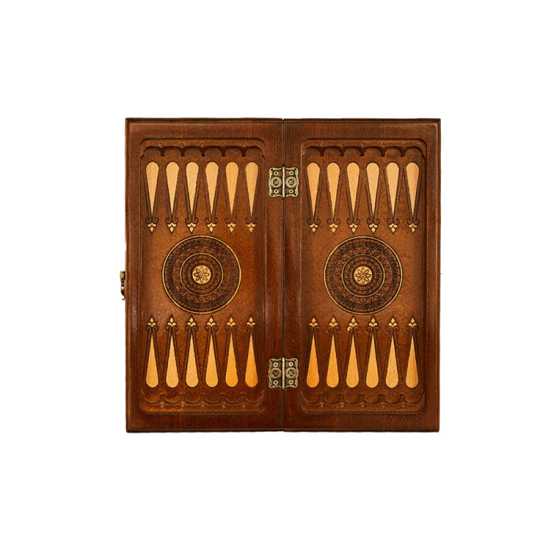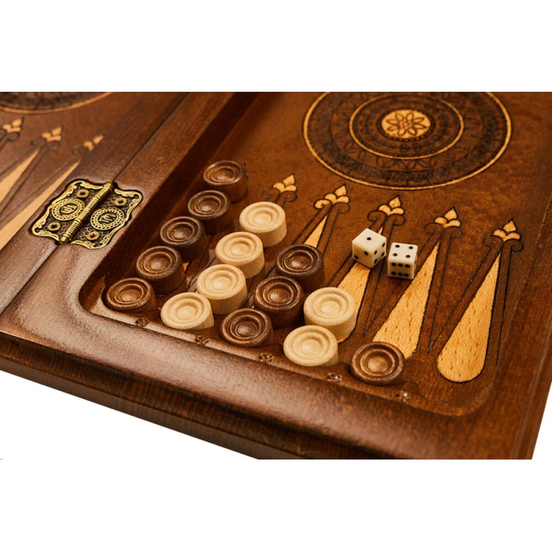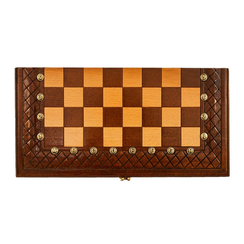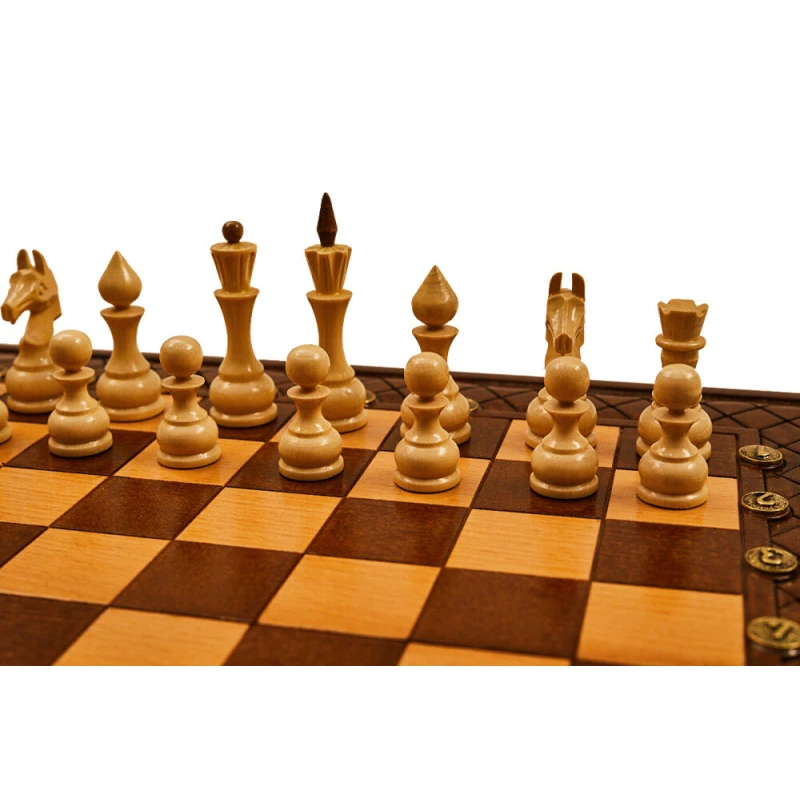 Игровая доска сделана из бука, так как это прочный и надёжный материал. В комплекте уже есть необходимые фигуры, фишки и кости, чтобы владелец мог в любое время сыграть партию со своими друзьями. Это отличное решение для покупки себе, а также в качестве подарка близкому человеку любого, даже самого высокого статуса.