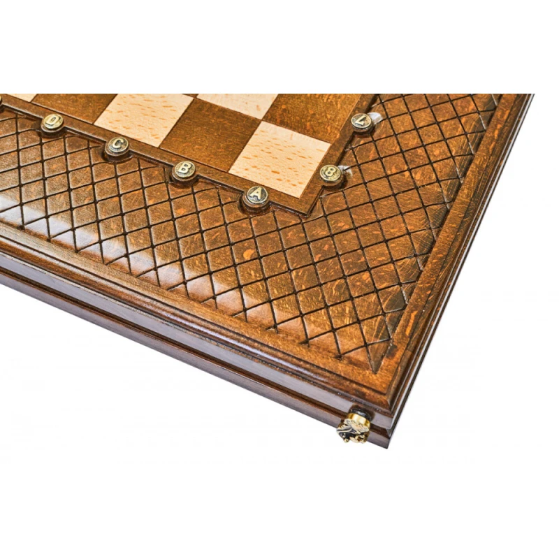 Что в коробке? 32 фигуры; 32 фишки; 2 игральные кости; доска; защитный чехол. «Эндшпиль 1» – большой набор 2-в-1, состоящий из двух классических настольных игр – шахмат и нард. Элегантная модель выполнена из натуральной буковой древесины одним из самых известных армянских мастеров. Это достойное пополнение любой коллекции настолок, приятный подарок для себя или близкого человека. Доска оформлена в технике шелкографии. Поле для нард украшено классическими абстрактными узорами, а кромку шахматного поля украшает интересная фактурная рамка. Буквенные и числовые обозначения для поля выполнены в виде инкрустации металлических вставок, что делает эту модель еще более необычной. Фигуры для шахмат и нардовые фишки классической формы. Каждая из них имеет под собой мягкую подложку для предотвращения царапания доски.