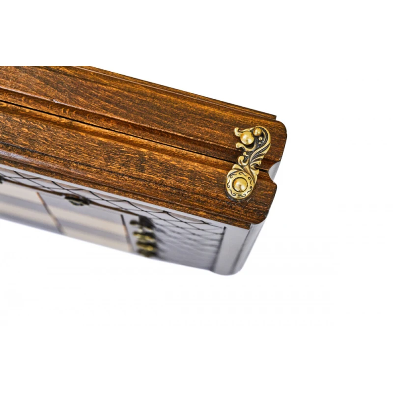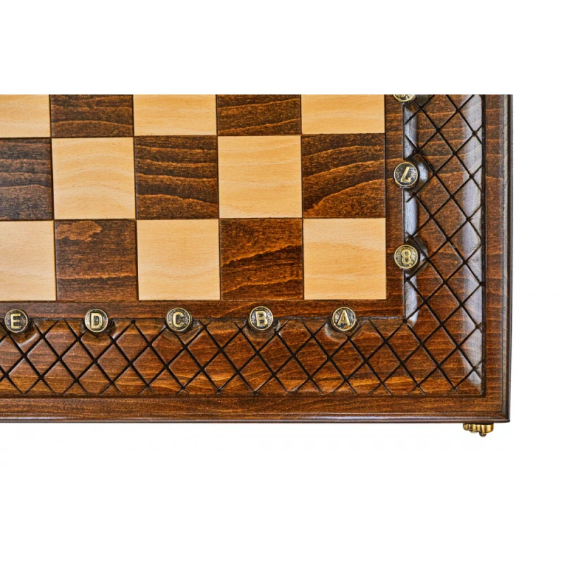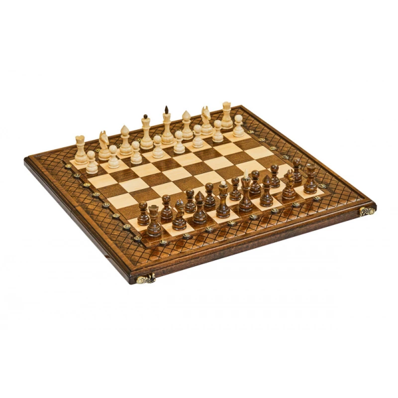 Что в коробке? 32 фигуры; 32 фишки; 2 игральные кости; доска; защитный чехол. «Эндшпиль 1» – большой набор 2-в-1, состоящий из двух классических настольных игр – шахмат и нард. Элегантная модель выполнена из натуральной буковой древесины одним из самых известных армянских мастеров. Это достойное пополнение любой коллекции настолок, приятный подарок для себя или близкого человека. Доска оформлена в технике шелкографии. Поле для нард украшено классическими абстрактными узорами, а кромку шахматного поля украшает интересная фактурная рамка. Буквенные и числовые обозначения для поля выполнены в виде инкрустации металлических вставок, что делает эту модель еще более необычной. Фигуры для шахмат и нардовые фишки классической формы. Каждая из них имеет под собой мягкую подложку для предотвращения царапания доски.