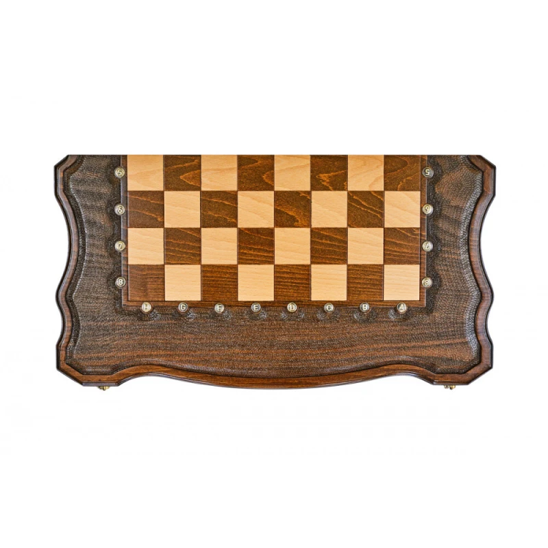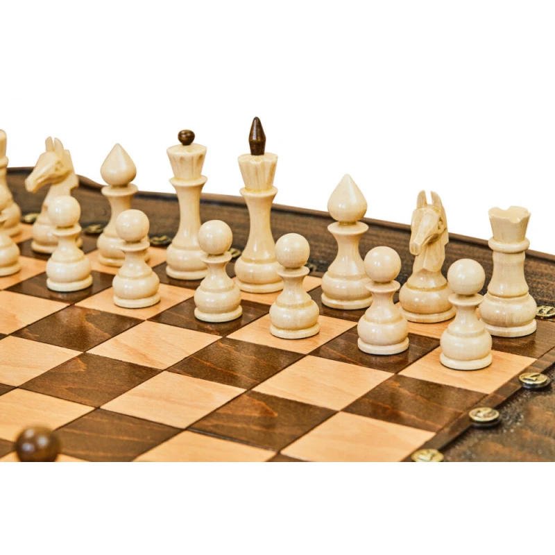 Что в коробке? 32 шахматные фигуры; 32 фишки для шашек и нард; 2 кубика; доска; защитный чехол. Большой подарочный набор «Гамбит 2», в который входит все необходимое для игры в шахматы, нарды и шашки – настоящая находка для всех поклонников классических настолок. Изделие выполнено одним из самых известных среди современных мастеров. В качестве основного материала выступает буковая древесина. Доска инкрустирована в технике шелкографии. Она украшена фактурными бортиками и абстрактными узорами. Фигуры и фишки – классические, удобные. Каждая из них имеет мягкую подложку, благодаря чему поверхность доски не повреждается во время игры.