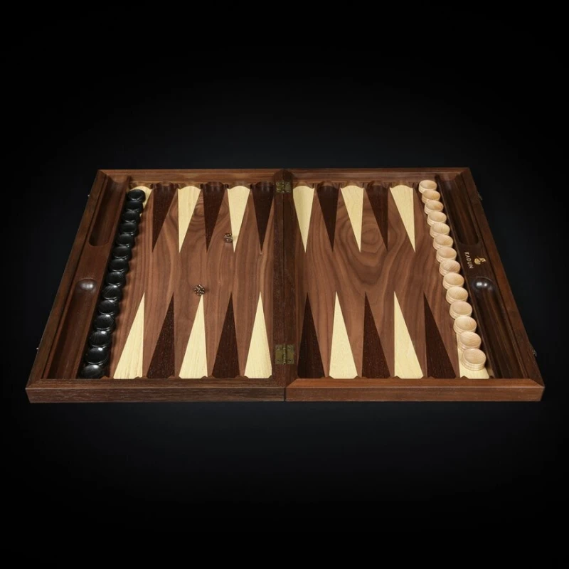 - Корпус:Массив ореха, конструкция складной доски на петлях и замочках, внутри место для фигур и шашек