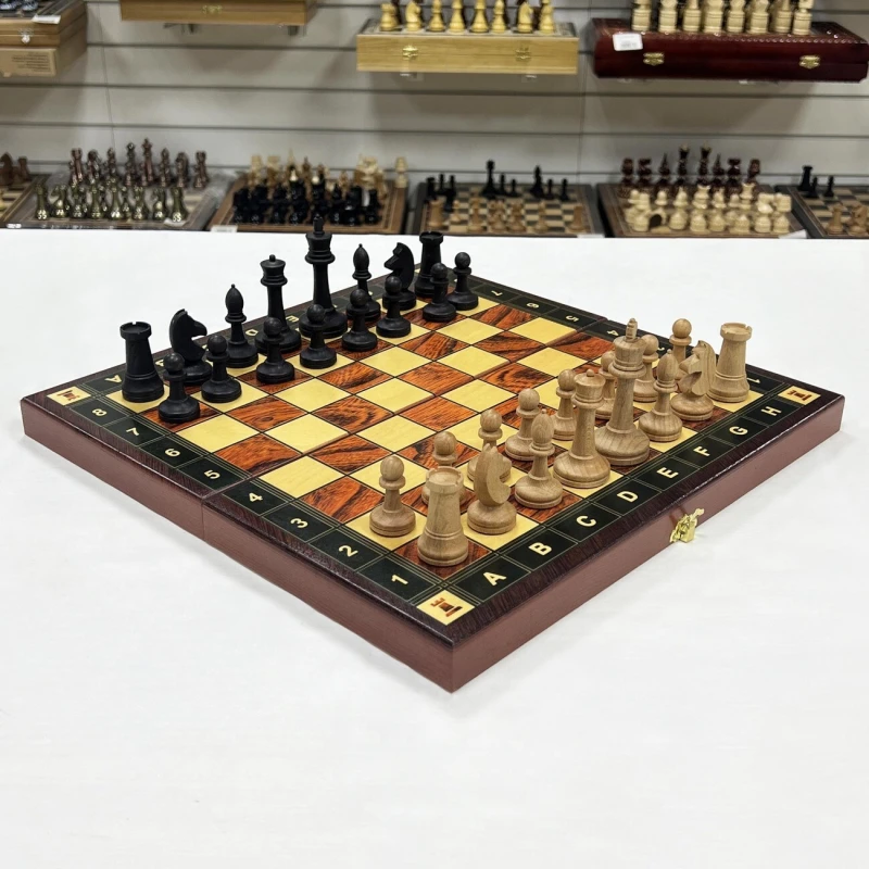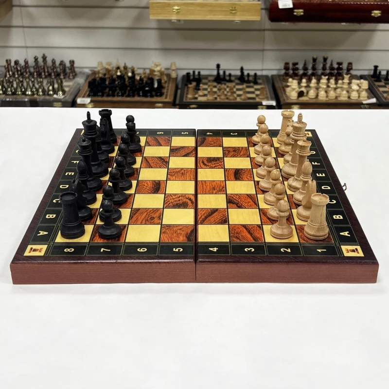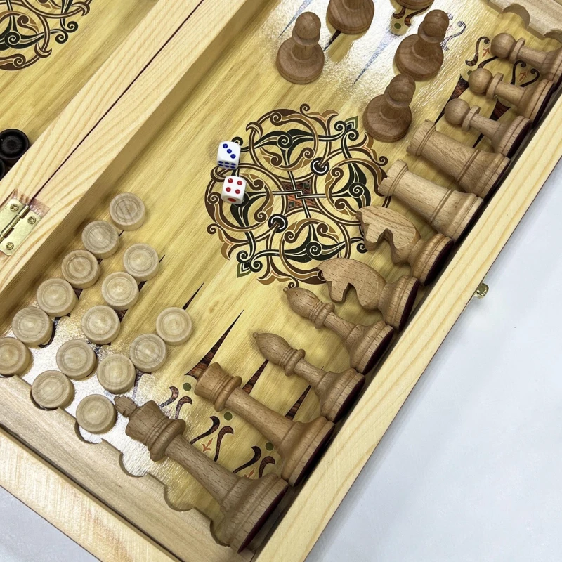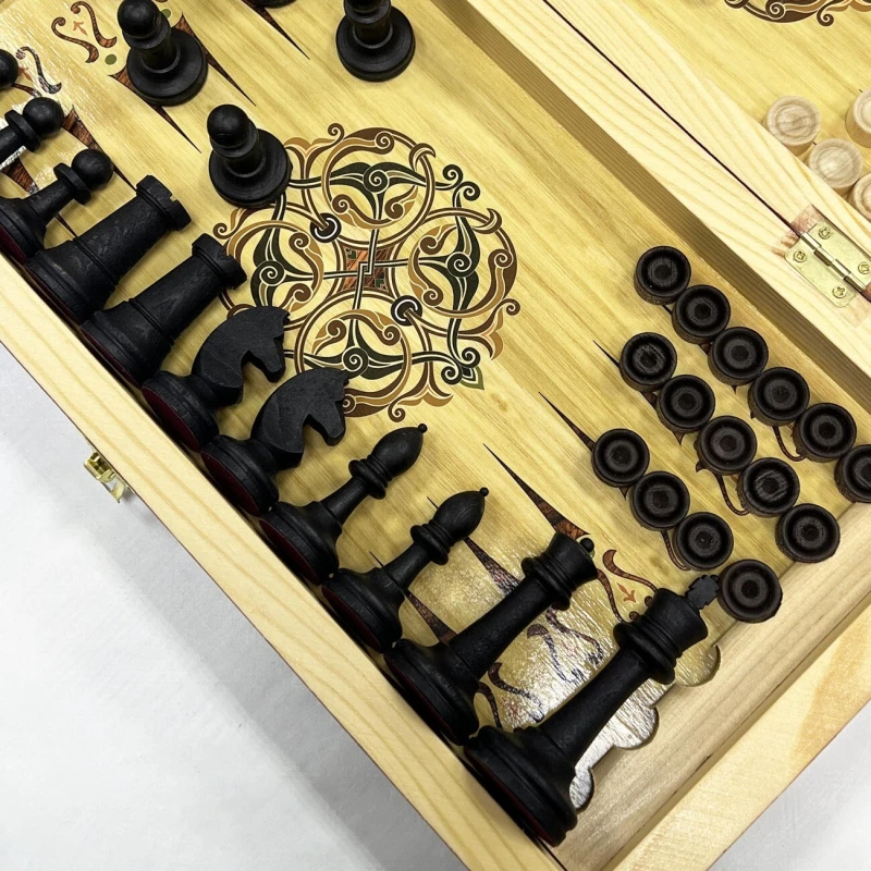 - Материалы:Светлых фигур бук, материал темных фигур тонированный бук, каркас доски сделан из сосны