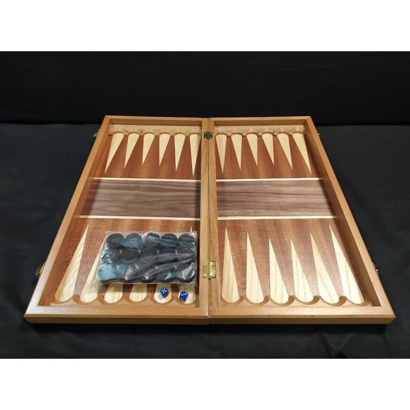 Классические шахматы , нарды , шашки из дерева. Достаточно удобный размер для игры в нарды, при этом шахматы полноценного размера. Фигуры с утяжелением, что придает дополнительной устойчивости. В комплекте игральны кости, шашки и шахматные фигуры.