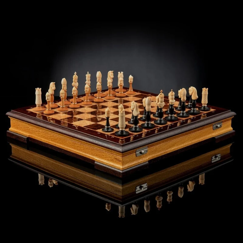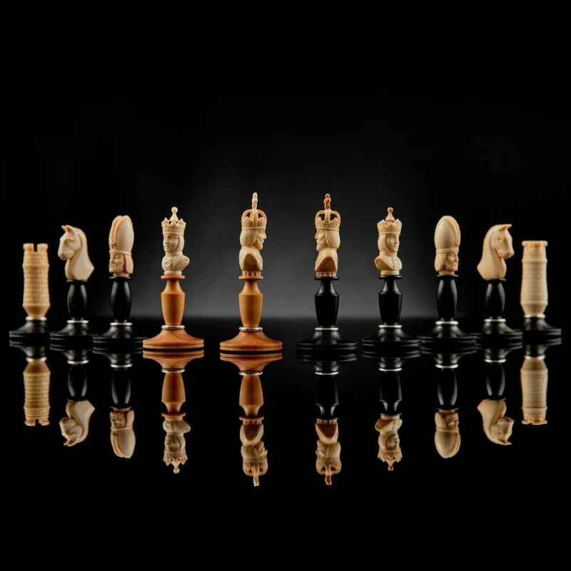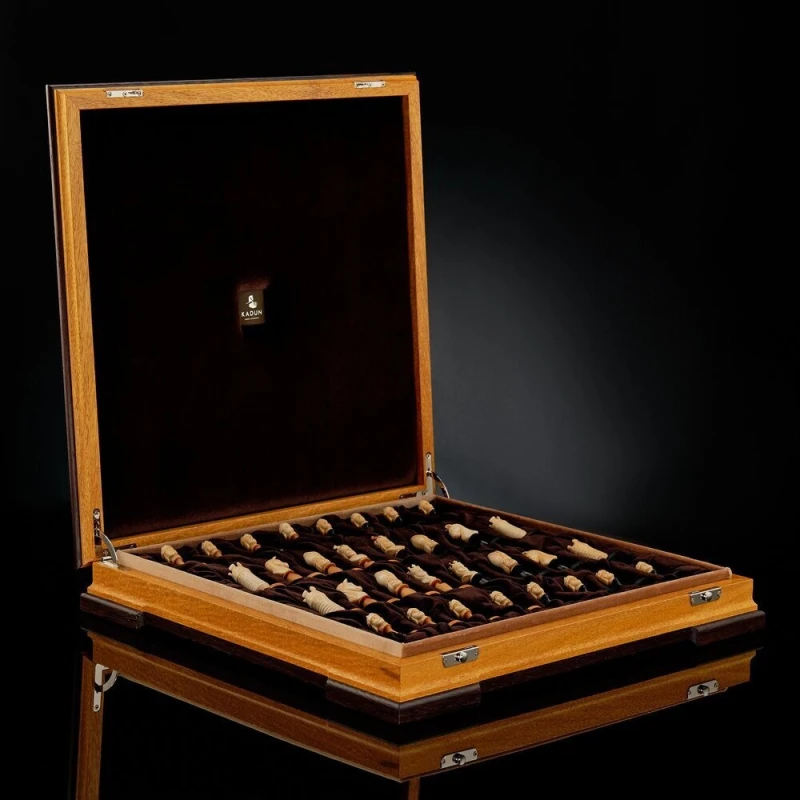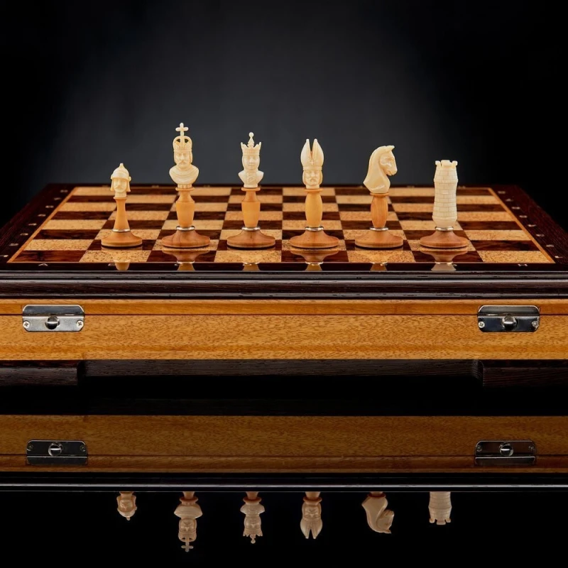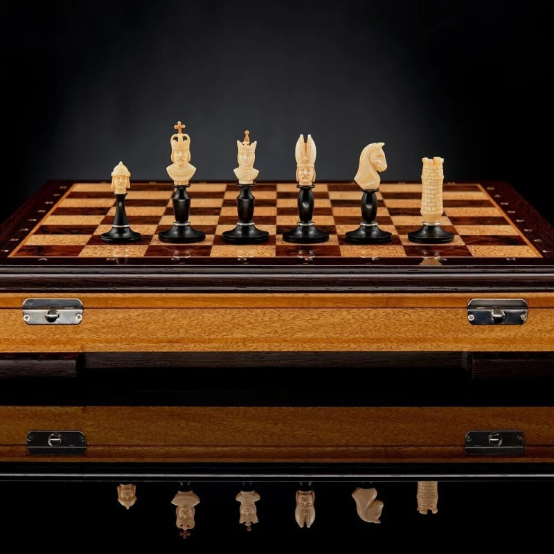 При изготовлении шахматного набора «Неаполь» мастера KADUN использовали редкие натуральные материалы: бивень мамонта, древесину колхидского самшита и серебро.