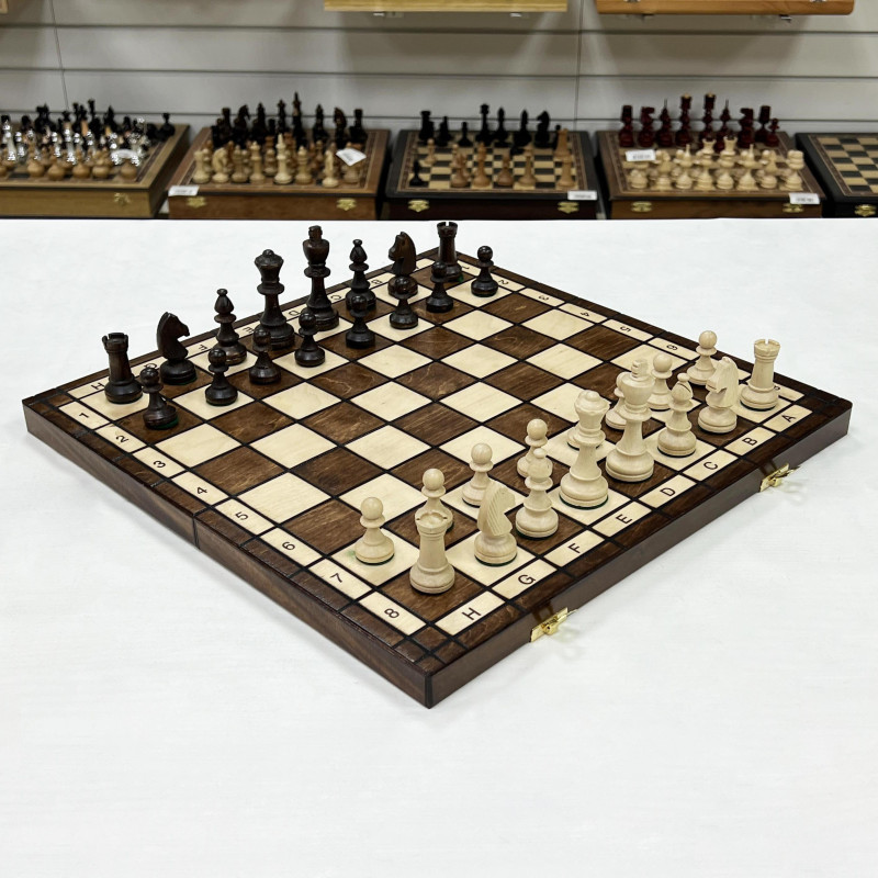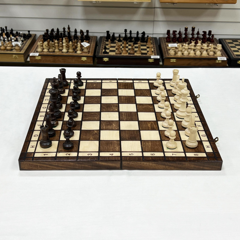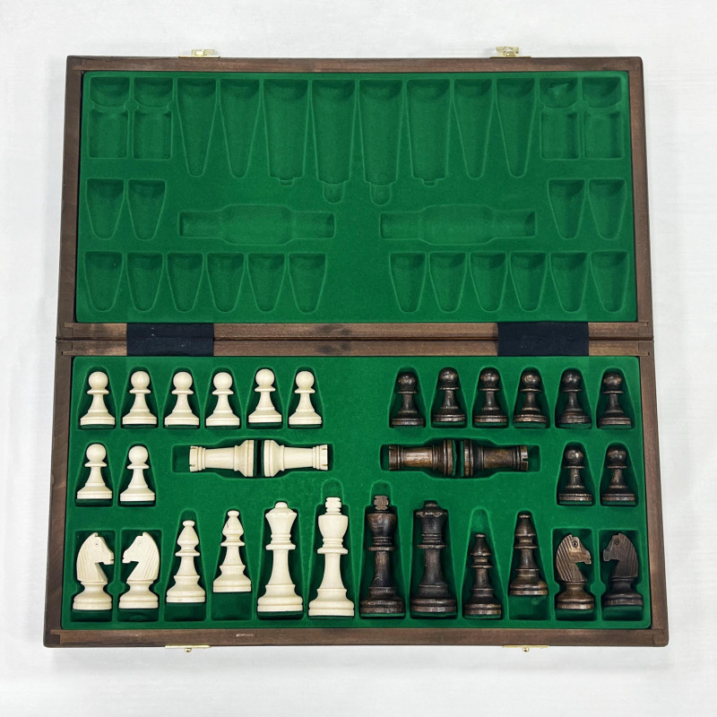 Данный набор шахмат имеет скромный, но при этом стильный дизайн. Светлые и темные фигуры сильно контрастируют друг с другом,поэтому во время игры не возникнет путаницы. Резьба очень качественная и сохраняет форму благодаря тщательной обработке. Фигуры выполняются из груши, материала, выдерживающего перепады температуры и влаги, а также достаточно прочного.