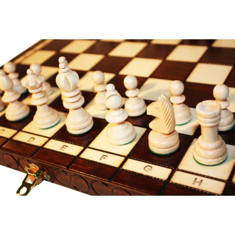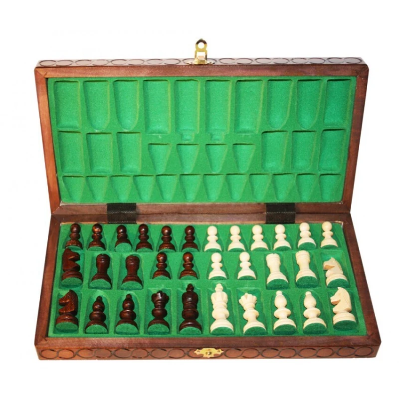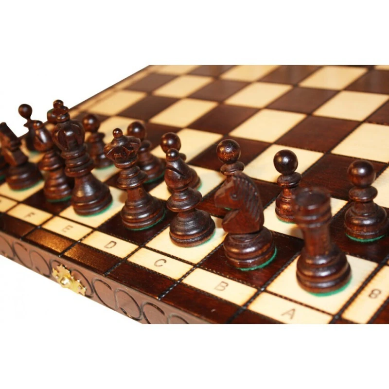 Данный набор шахмат имеет скромный, но при этом стильный дизайн. Светлые и темные фигуры сильно контрастируют друг с другом,поэтому во время игры не возникнет путаницы. Резьба очень качественная и сохраняет форму благодаря тщательной обработке. Фигуры выполняются из груши, материала, выдерживающего перепады температуры и влаги, а также достаточно прочного.