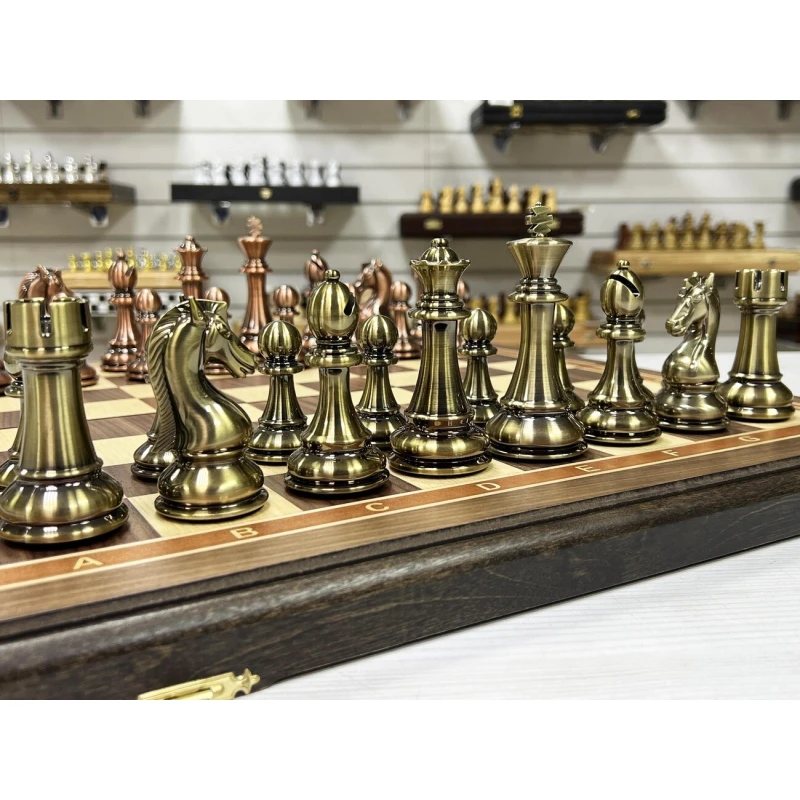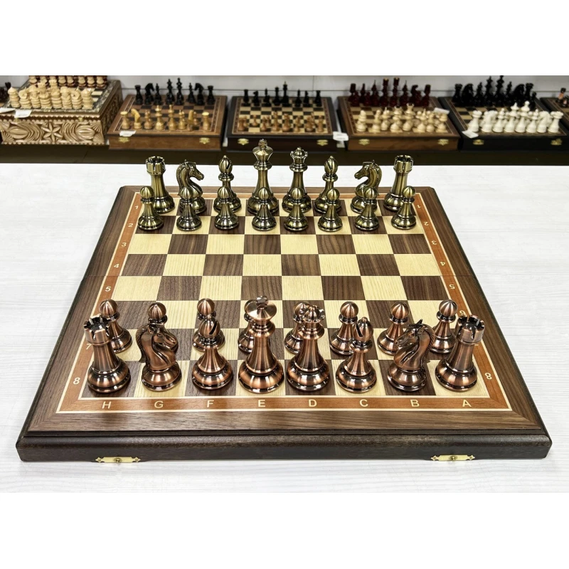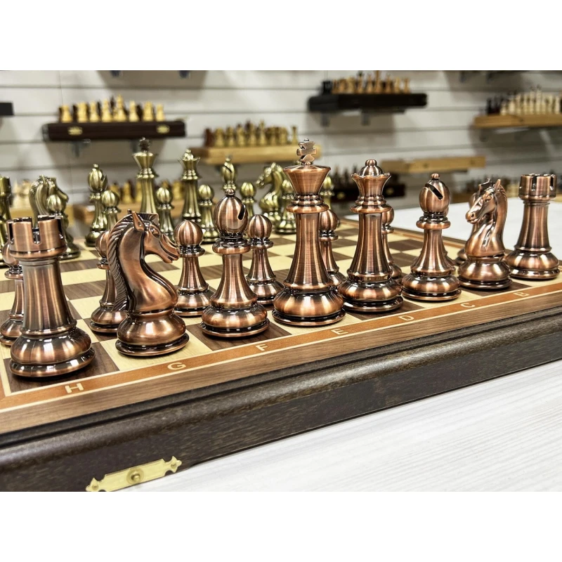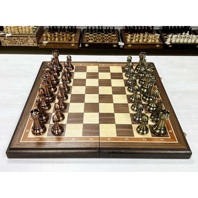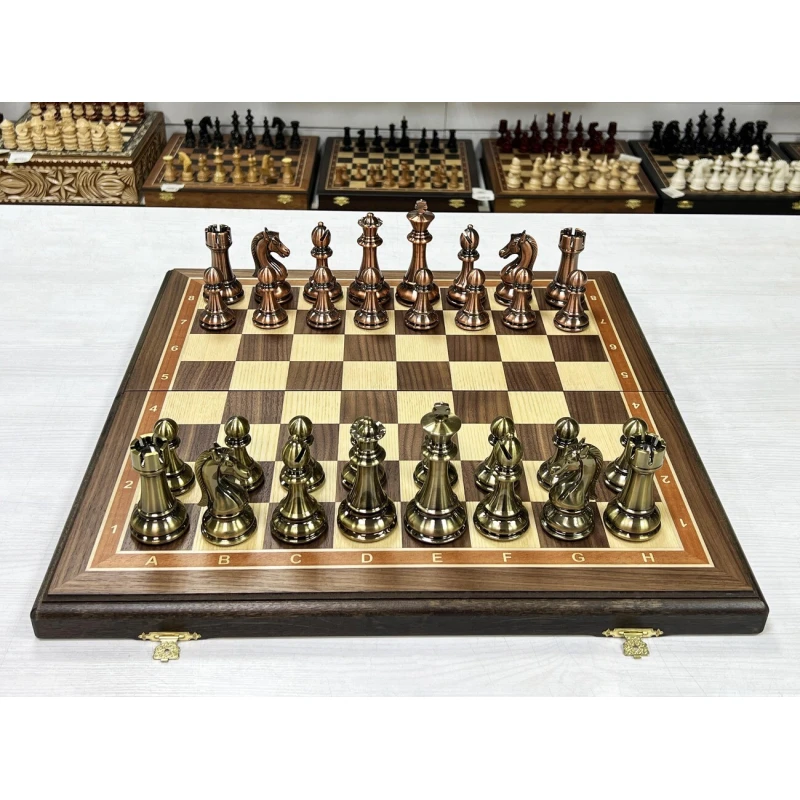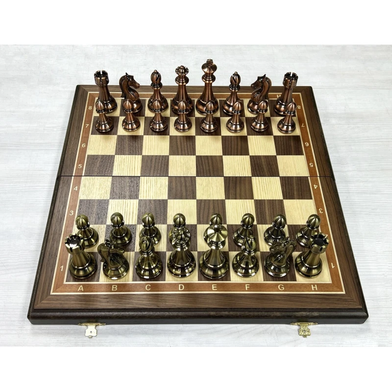 Шахматы подарочные турнирные из ценной породы дерева американского ореха и фигурами в стиле "Антик" из высококачественного композита