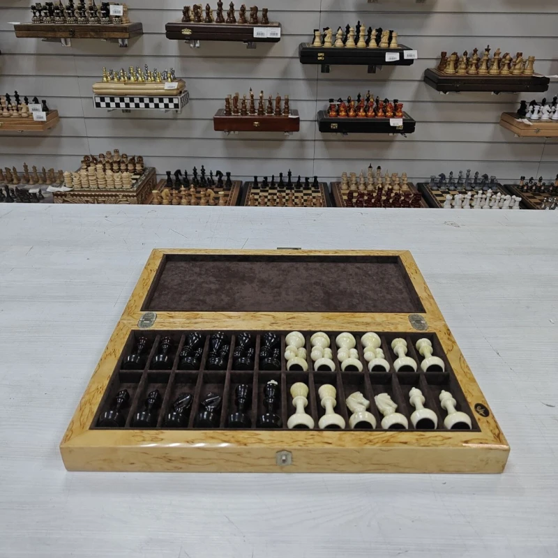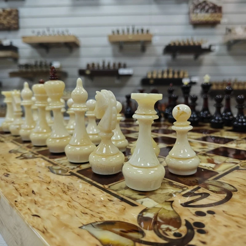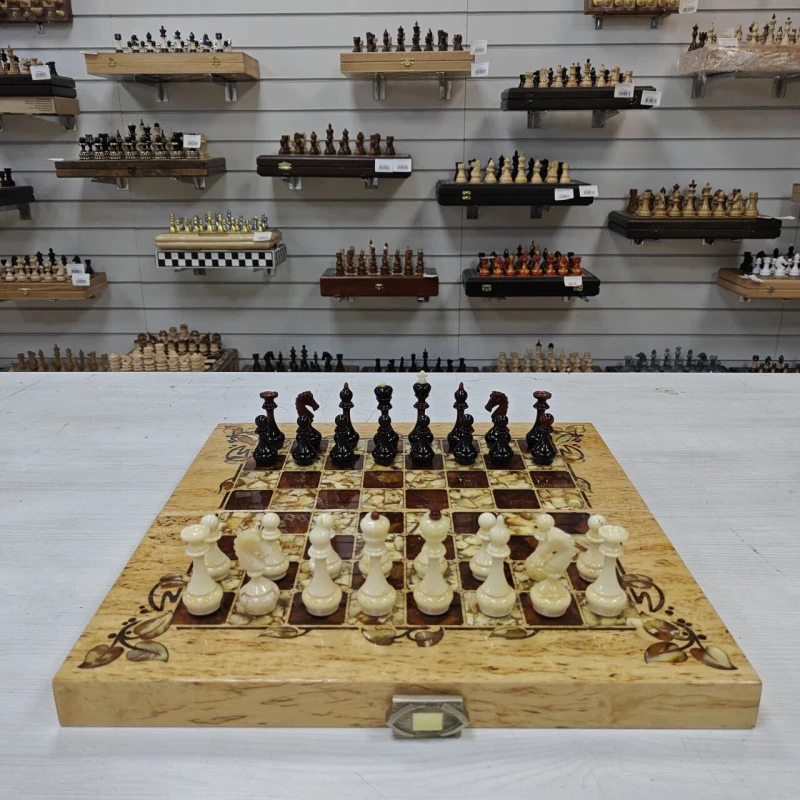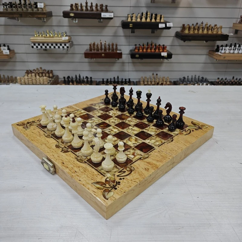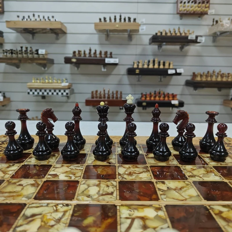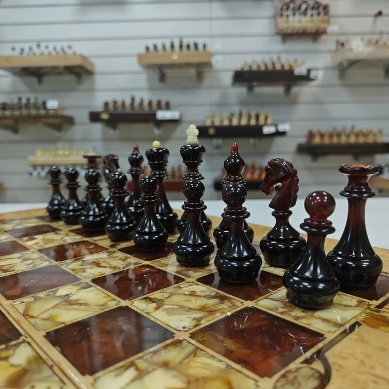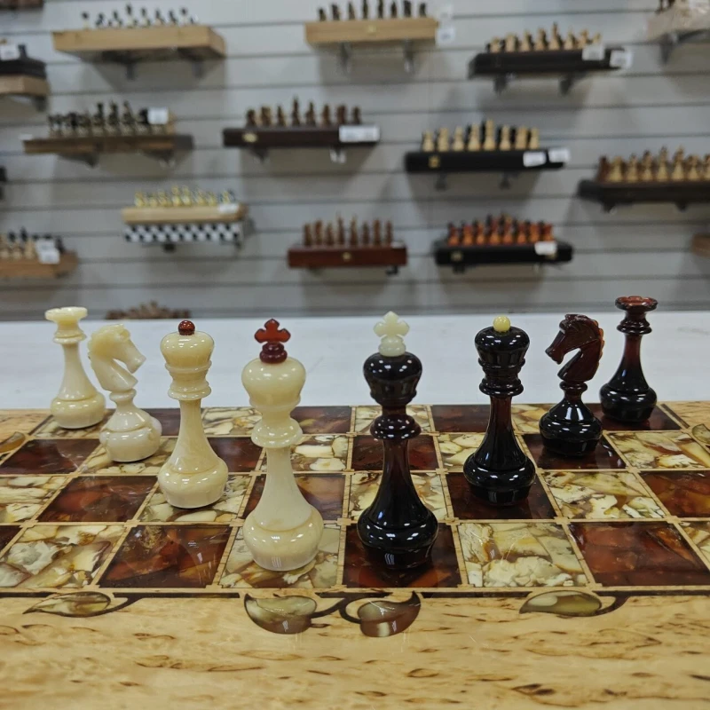 Шахматы Флора - это элегантный и изысканный набор. Подарочные шахматы от мастерской Емельянова - полностью ручная работа. Доска выполнена из карельской березы и янтаря, фигуры - эпоксидная смола. Доска имеет размеры 42х42 в разложенном виде. В комплекте идет кейс из экокожи.