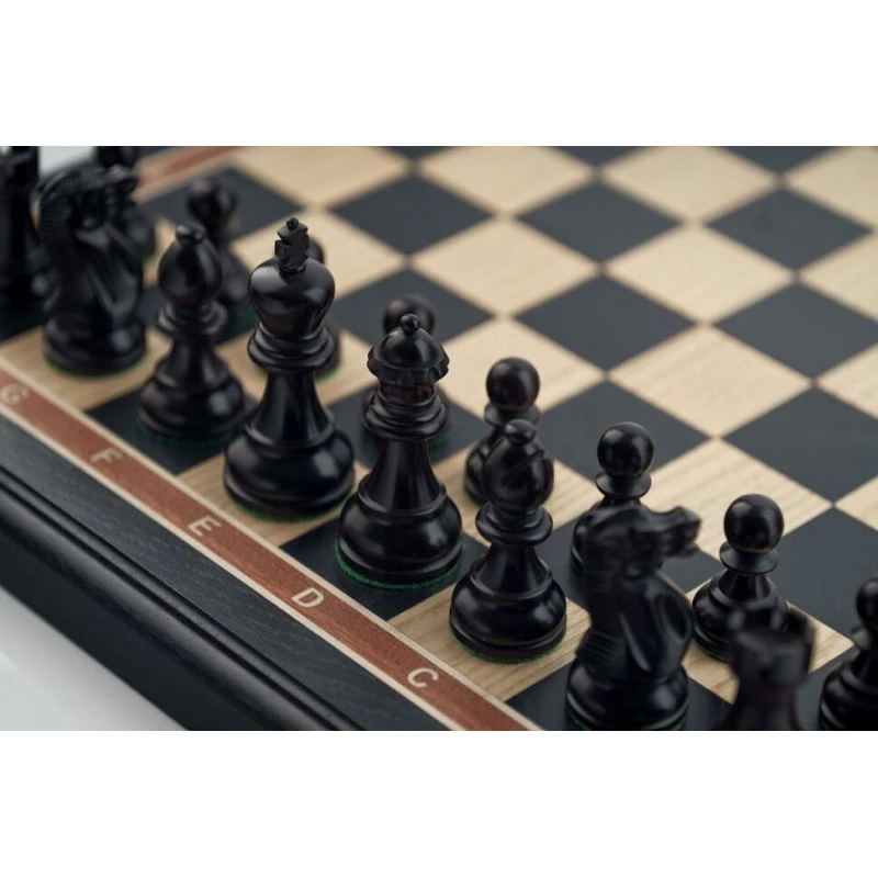 Красивый комплект для игры в шахматы с доской отечественного производства и индийскими фигурами из самшита и эбонированного палисандра. Размер доски в разложенном виде 50 на 50 см. Шахматное поле собирается вручную в технике маркетри. Шахматные фигуры это классический дизайн 18 века Стаунтон, вытачиваются вручную. Подойдут в подарок для профессиональных шахматистов и для любителей.