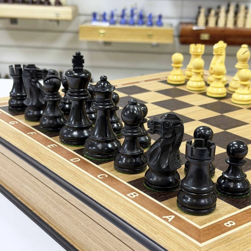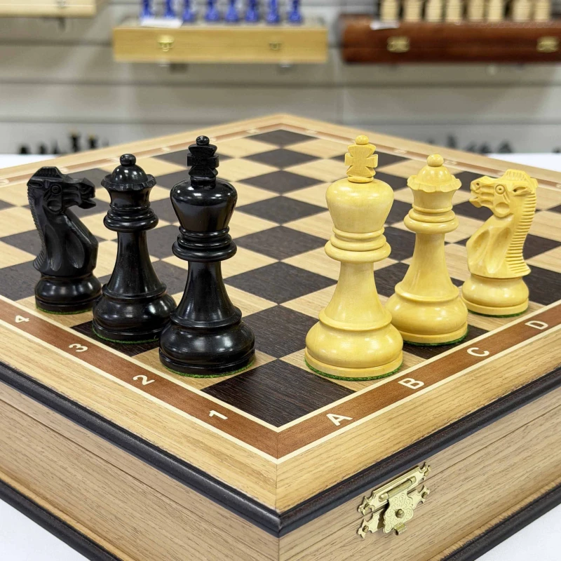 Шахматы подарочные Гамбит в деревянном ларце из дуба с утяжеленными фигурами большие