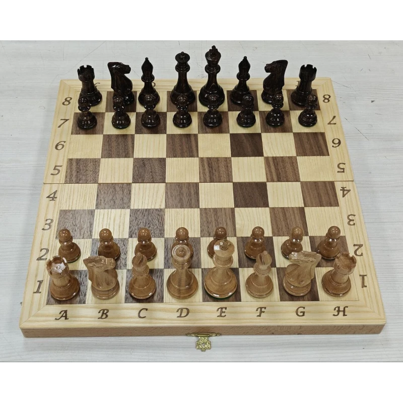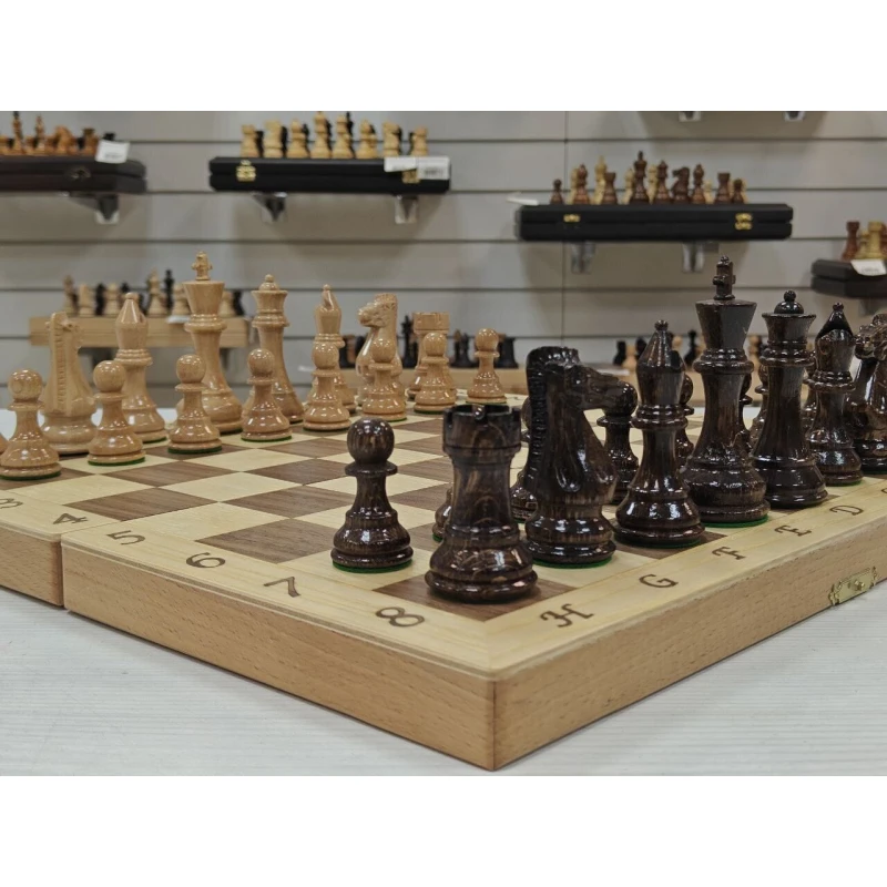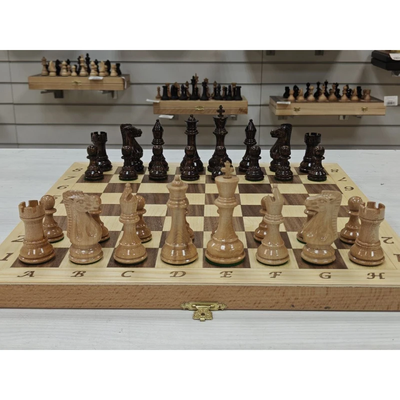 Подарочные шахматы из различных пород дерева. Размер доски 41.5 на 41.5 см. Клетки собираются в ручную в технике маркетри из красного дерева и ясеня. Фигуры изготовлены из дуба. Сделаны в России. Классический дизайн и цвет подойдут в подарок для начинающих и профессиональных шахматистов. Фигуры устойчивые на доске за счет утяжеления металлическими сердечниками, покрыты глянцевым лаком.