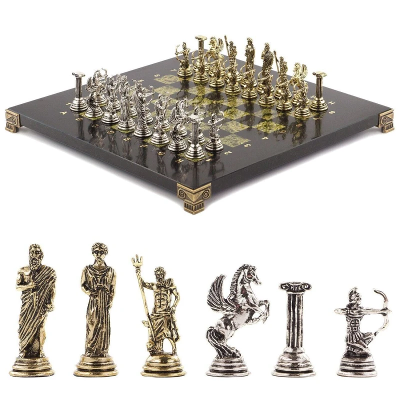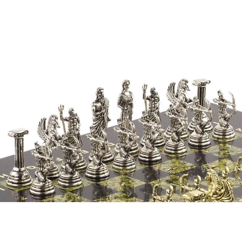 Шахматы подарочные каменные с фигурами "Римские лучники" 28х28 см из змеевика весом 6300 г.