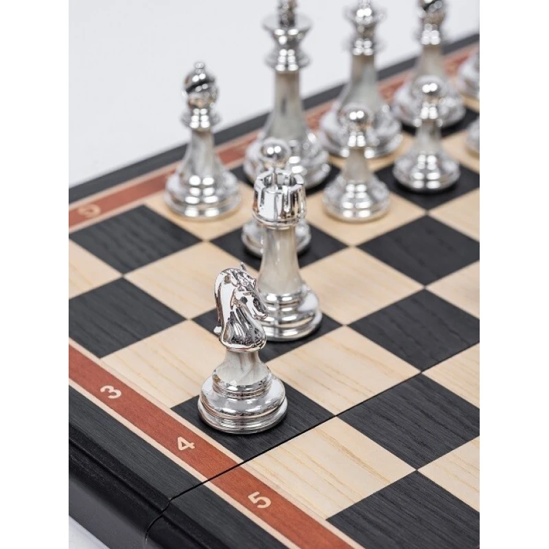 Красивые шахматы с утяжеленными фигурами из композитных материалов на классической доске из дерева моренный дуб, ясень и береза. Внутри доска покрыта бархатными ячейками. Размер доски в развернутом виде 45 на 45 см. Шахматное поле собирается в технике маркетри из ценных пород дерева. Подойдут в подарок начинающим и опытным игрокам.