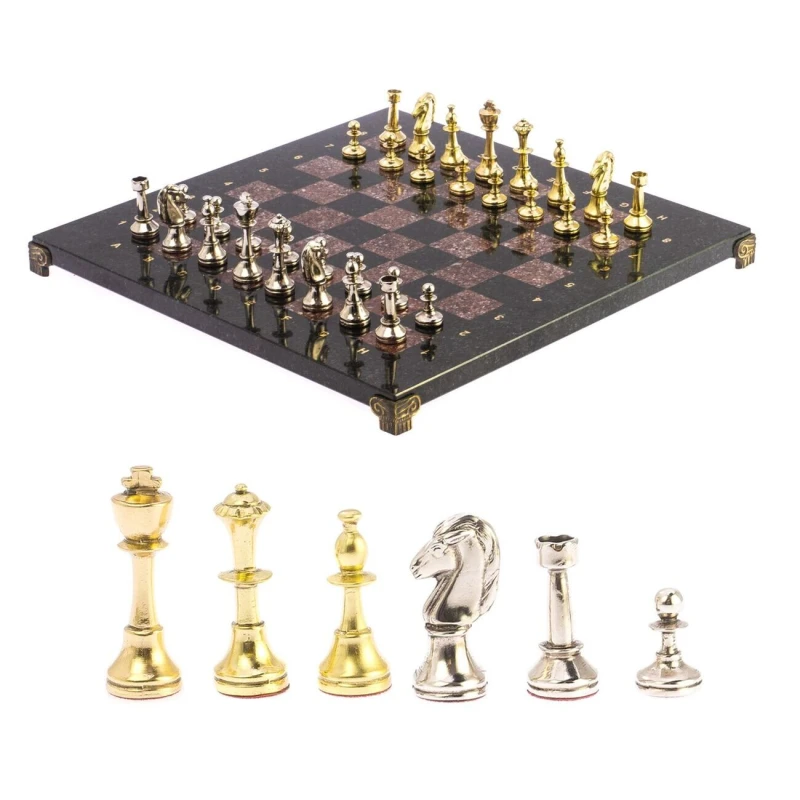 Красивые подарочные шахматы из камня и металла. Фигуры сделаны из металла замак, доска из камня змеевик и лемезит. Упакованы в чемодан из эко кожи. Размер доски 36 на 36 см. Подойдут в подарок взрослым, детям. Сделаны в России. Классические фигуры в стиле Стаунтон.