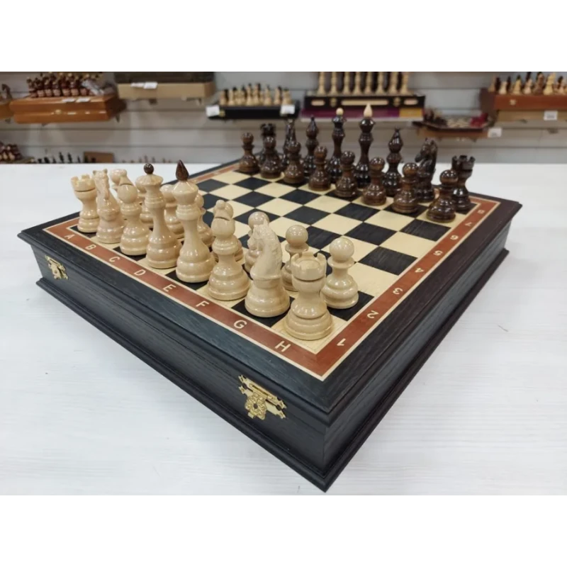 Эти шахматы являются подарочными, так как они поставляются в специальном ларце или же другими словами в шкатулке или ящике как удобнее. Такой дизайн позволяет сохранить фигуры от повреждений и пыли, а также делает этот комплект удобным для переноски.