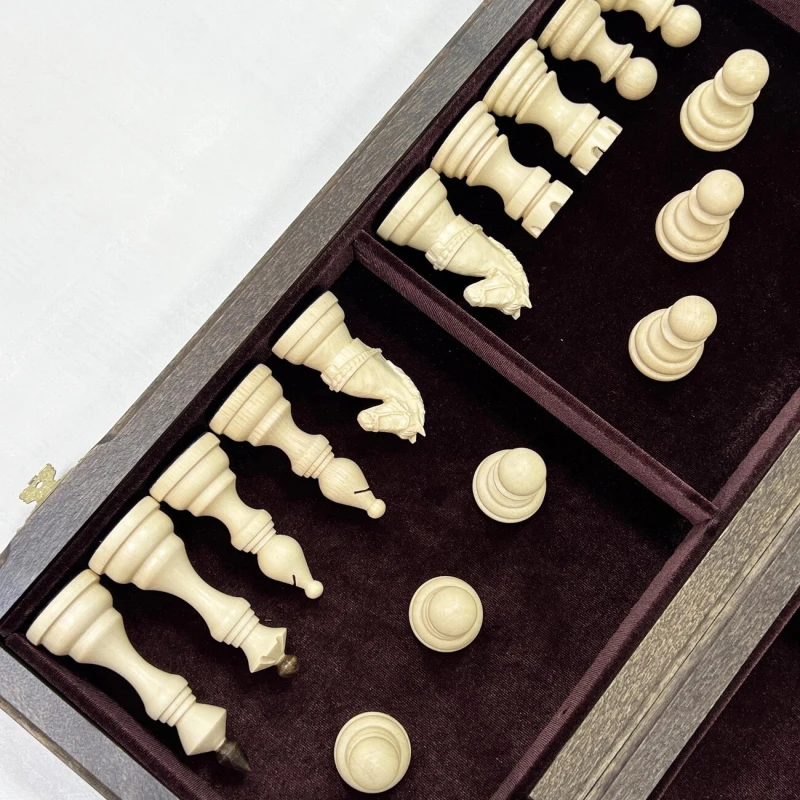 Шахматы сделаны из дерева вручную. Размер доски 45 на 45 см в развернутом виде. Размер клетки 4.5 на 4.5 см. Высота короля 9.5 см, высота пешки 5 см. Материал шахматных фигур граб. Шахматное поле собирается в технике маркетри их ореха и ясеня. Внутри доска покрыта бархатом с защитой петель, что бы не царапать стол. Шахматы подойдут в подарок для детей и взрослых, за счет классической формы фигур и турнирной шахматной доски процесс обучения шахматам будет проходить гораздо лучше чем на резной доске с необычными фигурами.