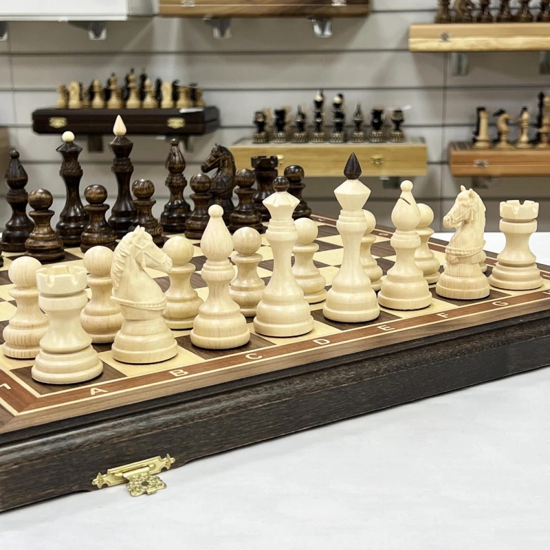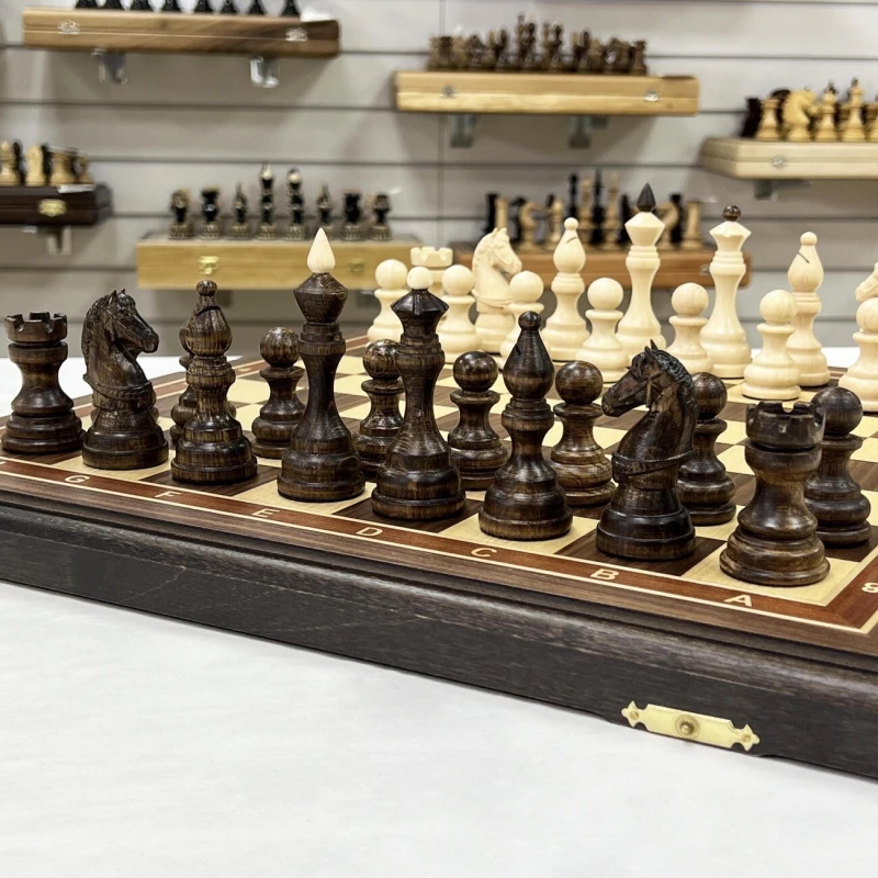 Купить подарочные шахматы, большие шахматы, деревянные шахматы, резные шахматы, шахматы Стаунтон, эксклюзивные шахматы, дорогие шахматы можно в наших магазинах в Москве и в Санкт Петербурге.