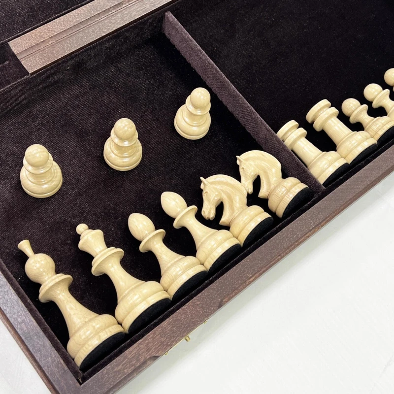 Изготовленные из качественного дерева, шахматы обладают прочностью и долговечностью. Деревянная текстура добавляет натуральности и теплоты внешнему виду шахмат.
