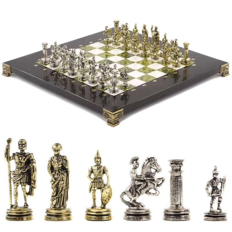 Шахматы изготовлены вручную из натурального камня, каждое изделие имеет индивидуальный оттенок и рисунок. Допускается наличие прожилок и внутренних трещин в камне, размеры могут немного отличаться.
