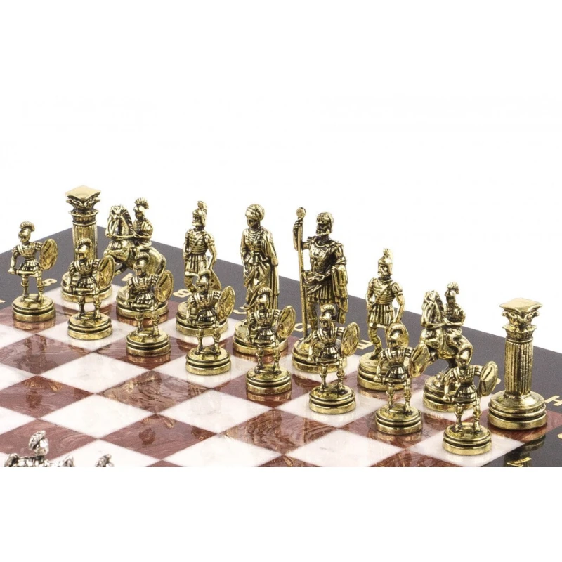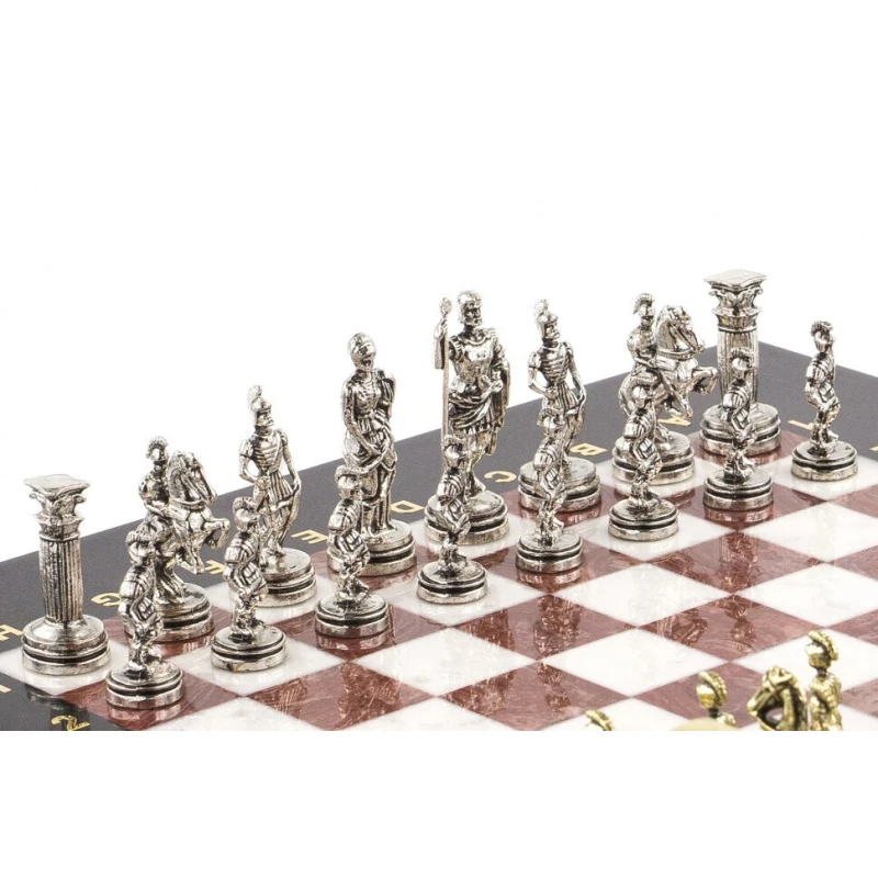 Шахматы изготовлены вручную из натурального камня, каждое изделие имеет индивидуальный оттенок и рисунок. Допускается наличие прожилок и внутренних трещин в камне, размеры могут немного отличаться.