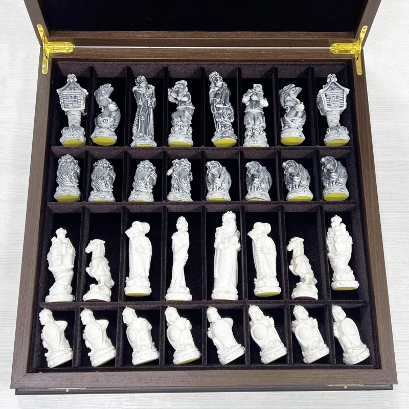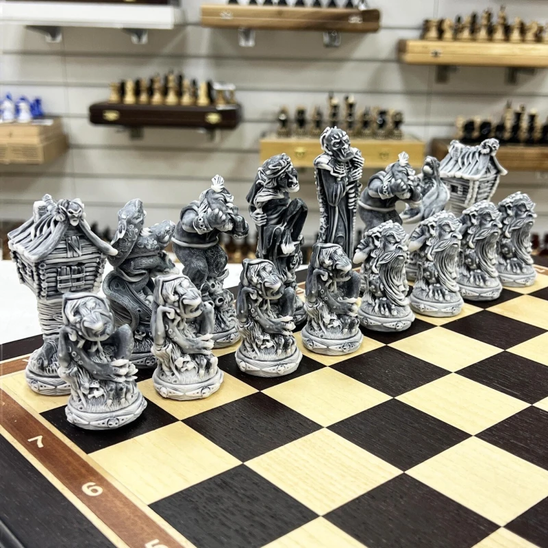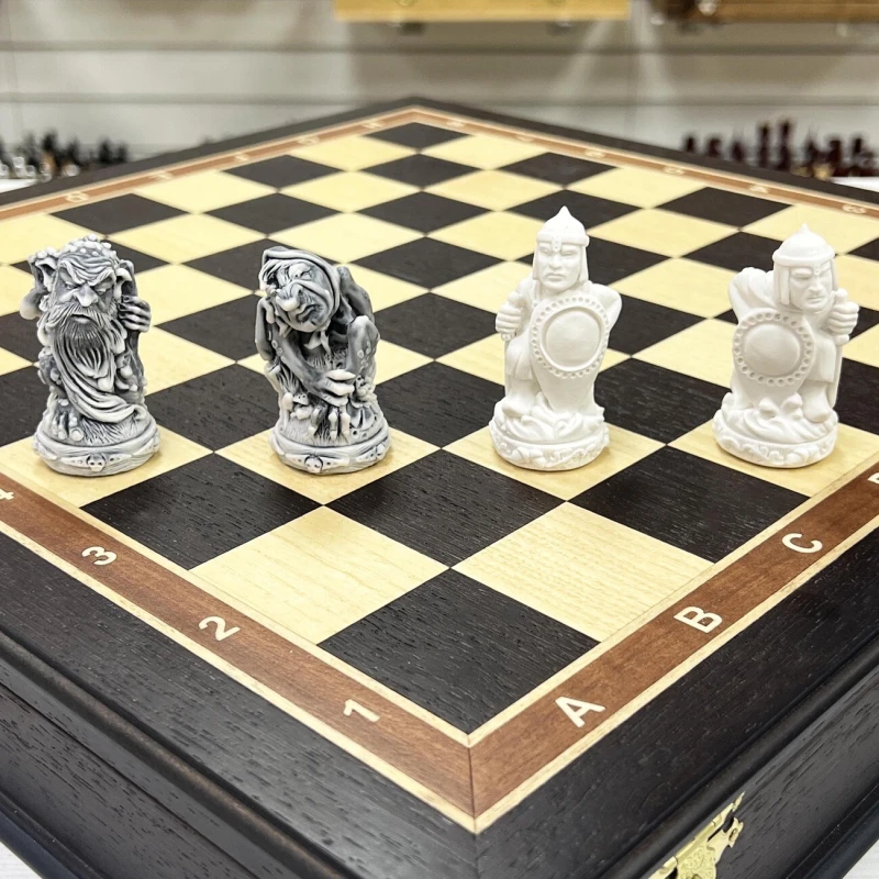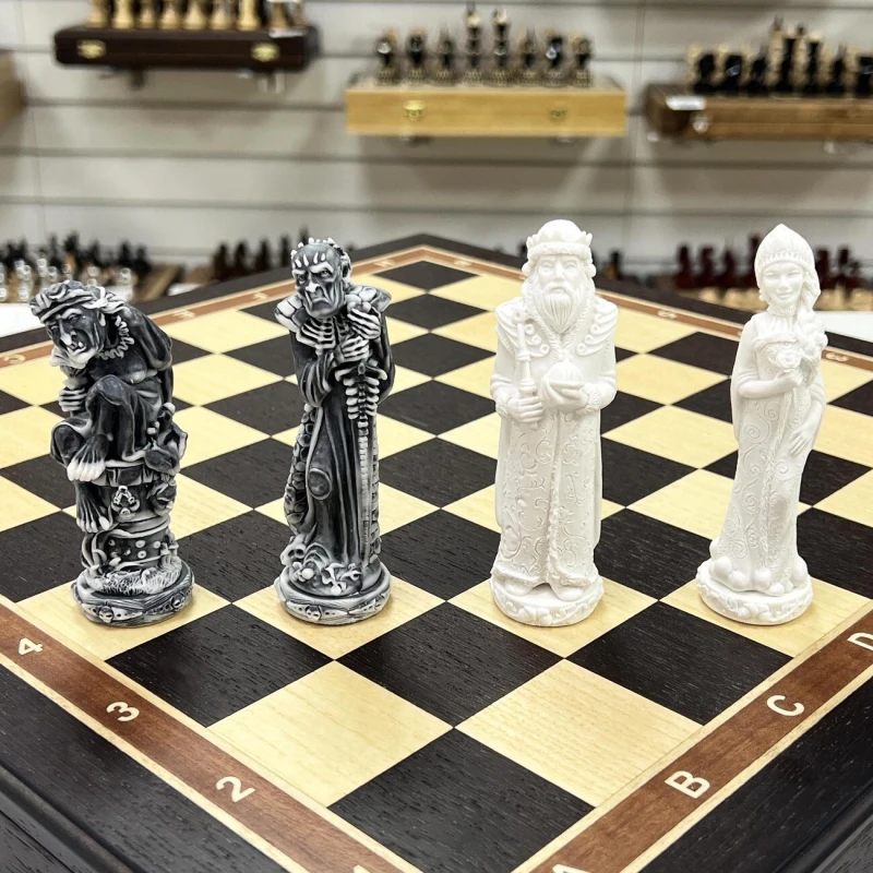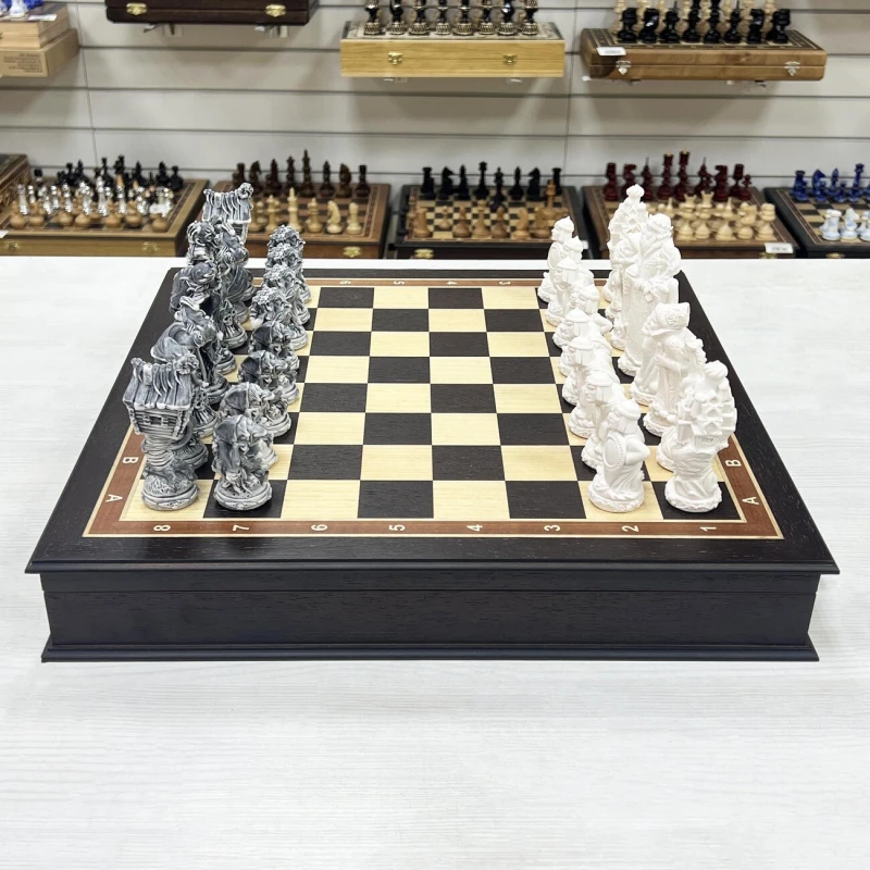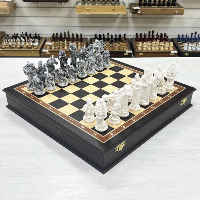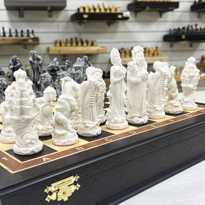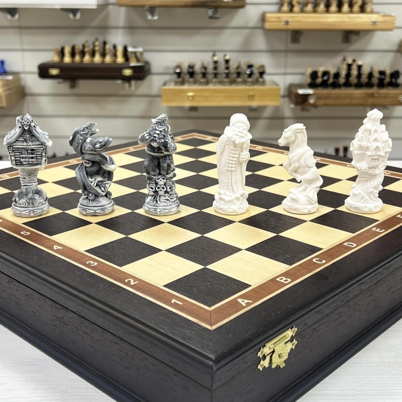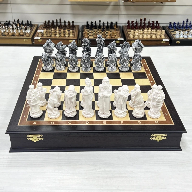 Шахматы подарочные Русские сказки в деревянном ларце из черного дерева