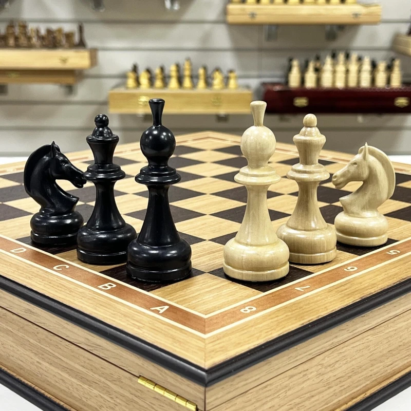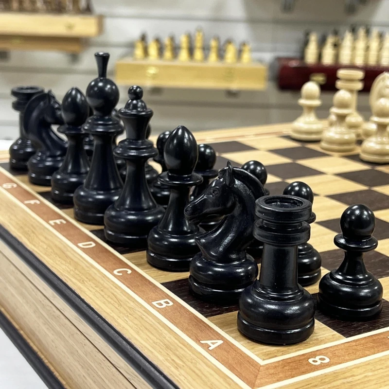Классические шахматные фигуры с утяжелением очень приятно ощущаются в руке и дополнительно придают устойчивость на шахматной доске во время игры.