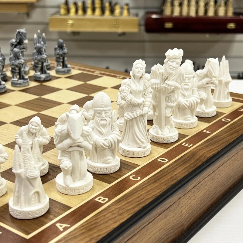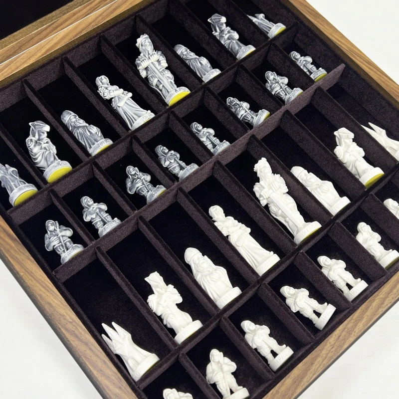 Эти шахматы являются подарочными, так как они поставляются в специальном ларце или же другими словами в шкатулке или ящике как удобнее. Такой дизайн позволяет сохранить фигуры от повреждений и пыли, а также делает этот комплект удобным для переноски.