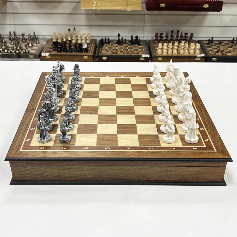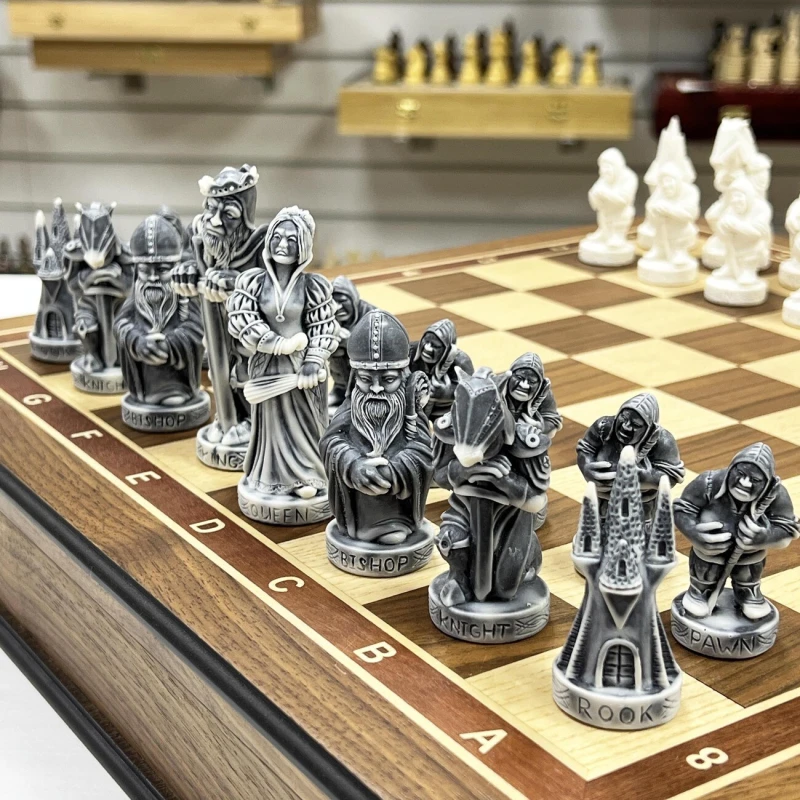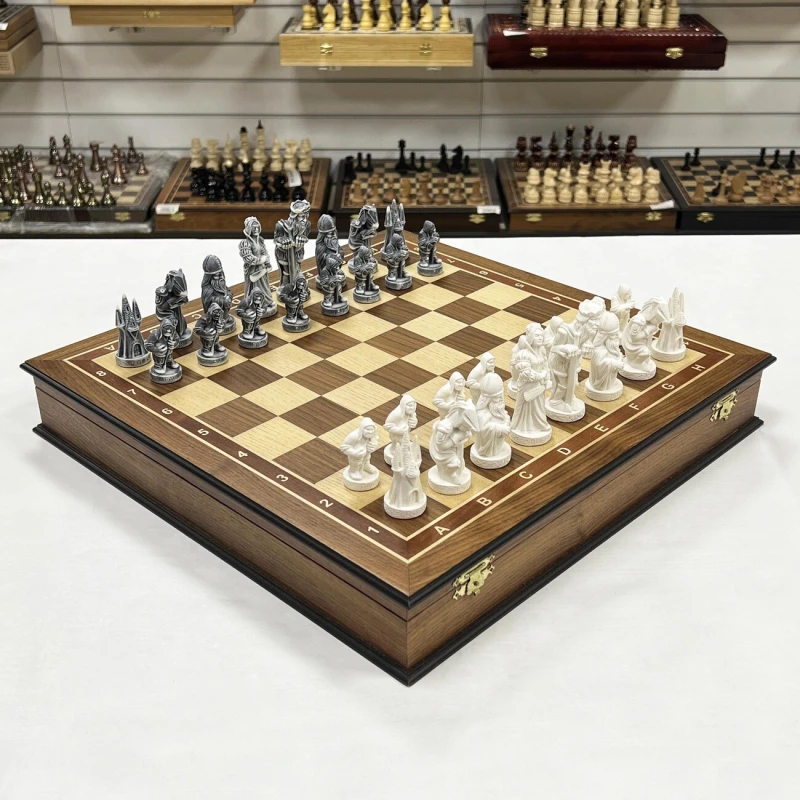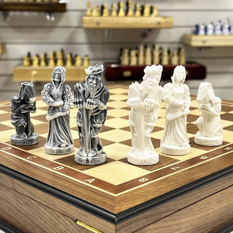 Шахматы в ларце выполнены из дерева, что придает им особый шарм и неповторимость. Каждая фигура создана мастерами с большим вниманием к деталям, поэтому они обладают не только функциональностью, но и художественной ценностью.