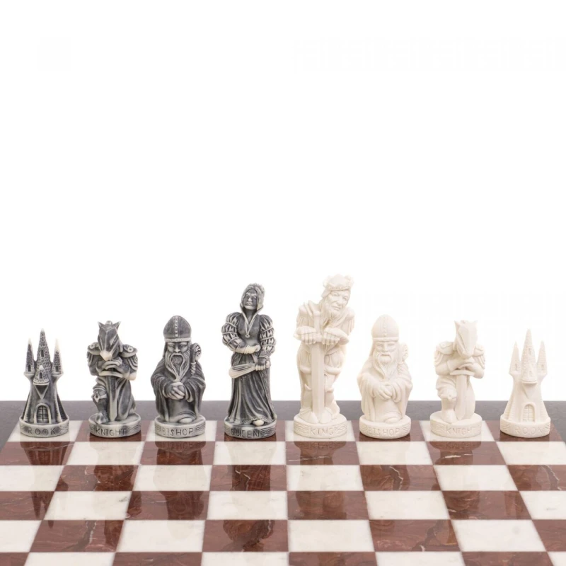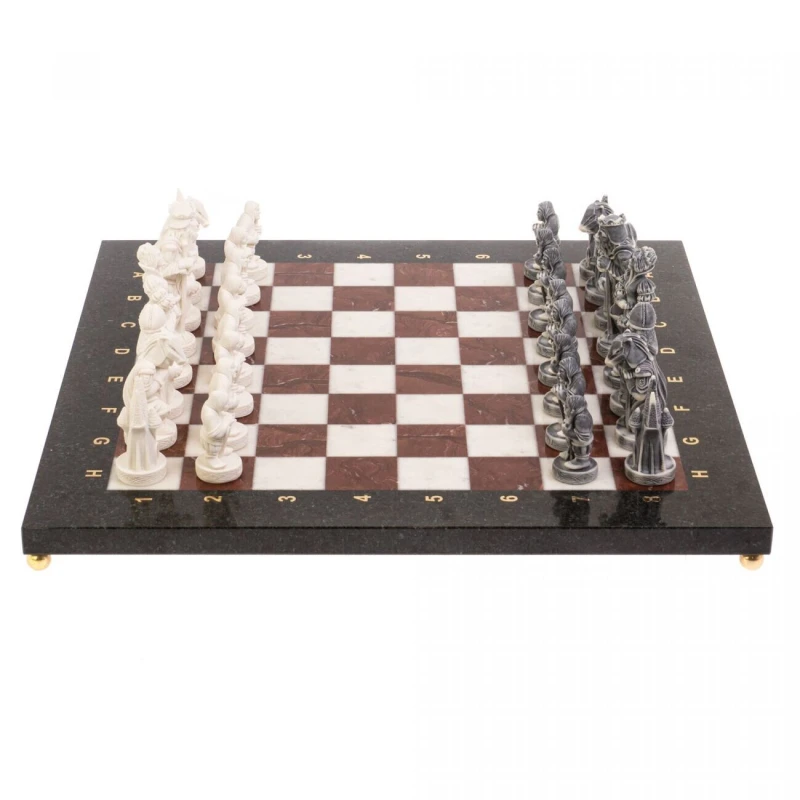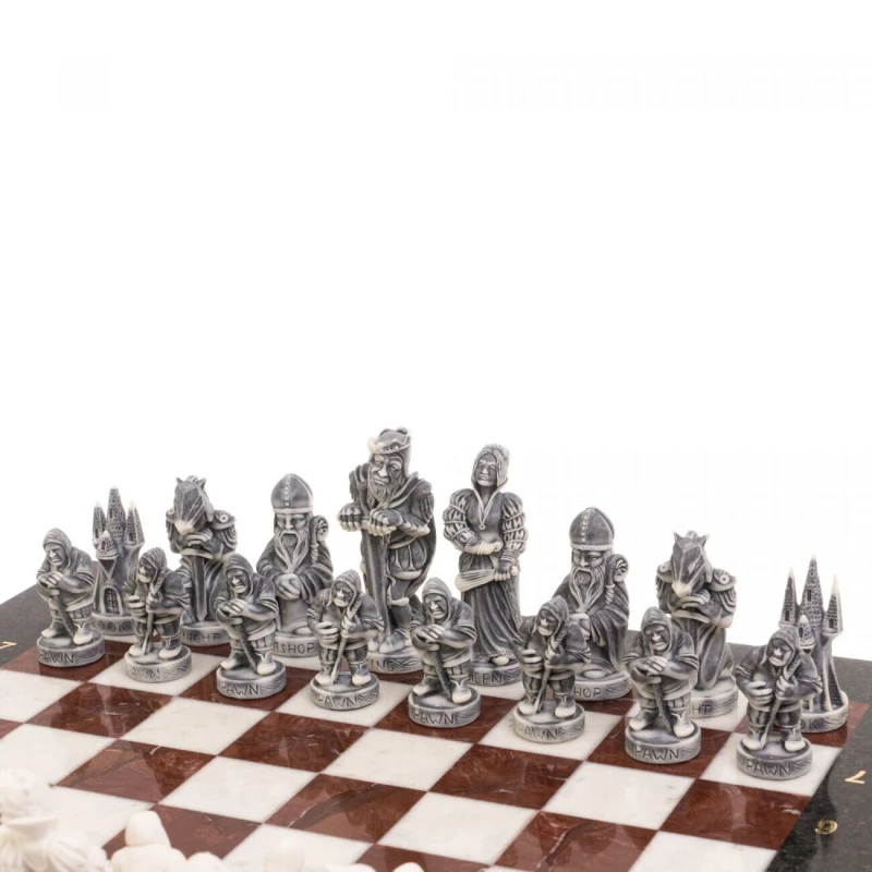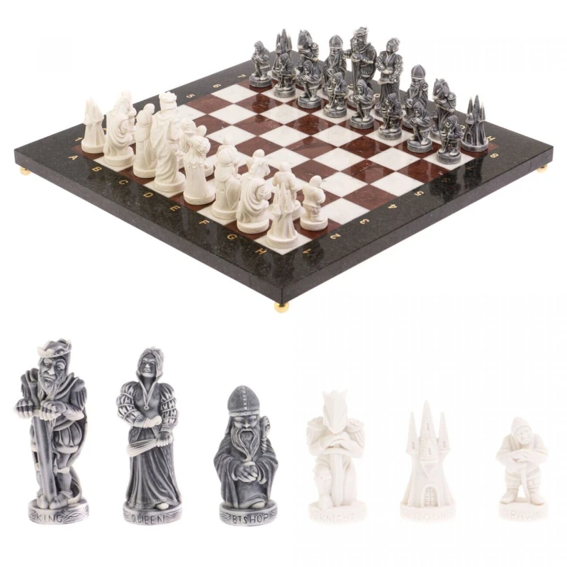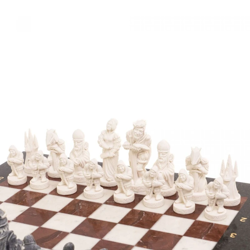 Шахматный набор изготовлен вручную, доска нескладная из натурального камня (змеевик лемезит, мрамор), шахматные фигуры из искусственного мрамора.
