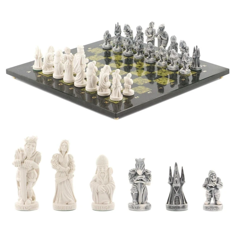 Шахматы из змеевика имеют стильный дизайн и вдобавок они изготавливаются вручную из безопасных и экологичных материалов.
