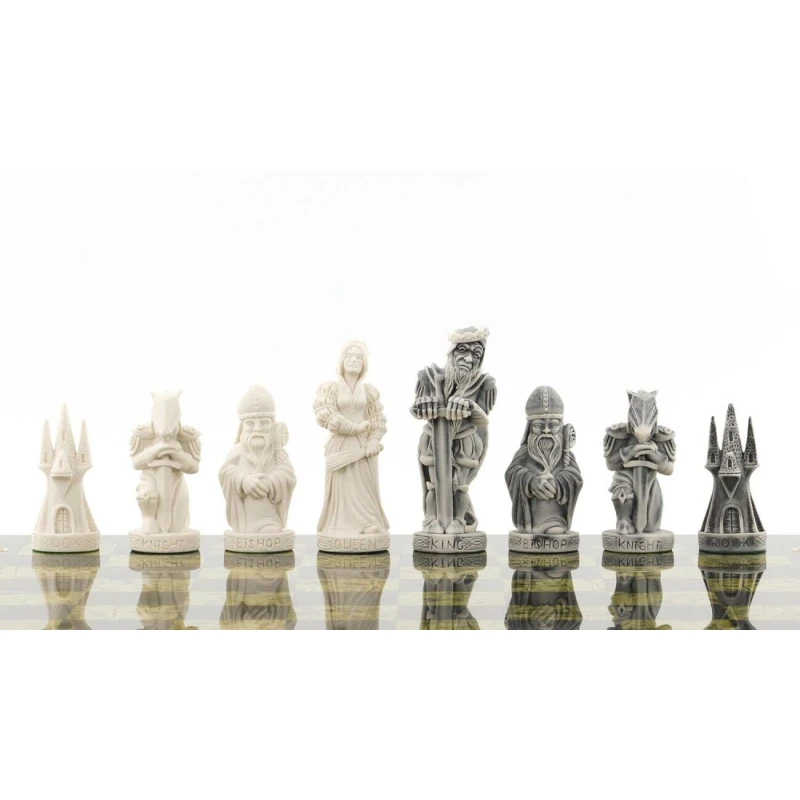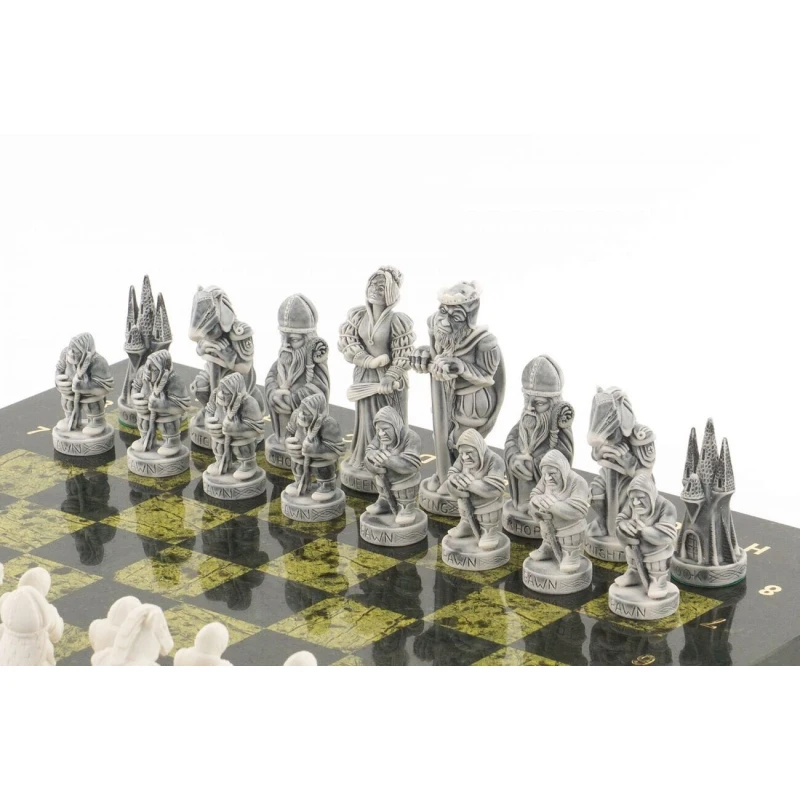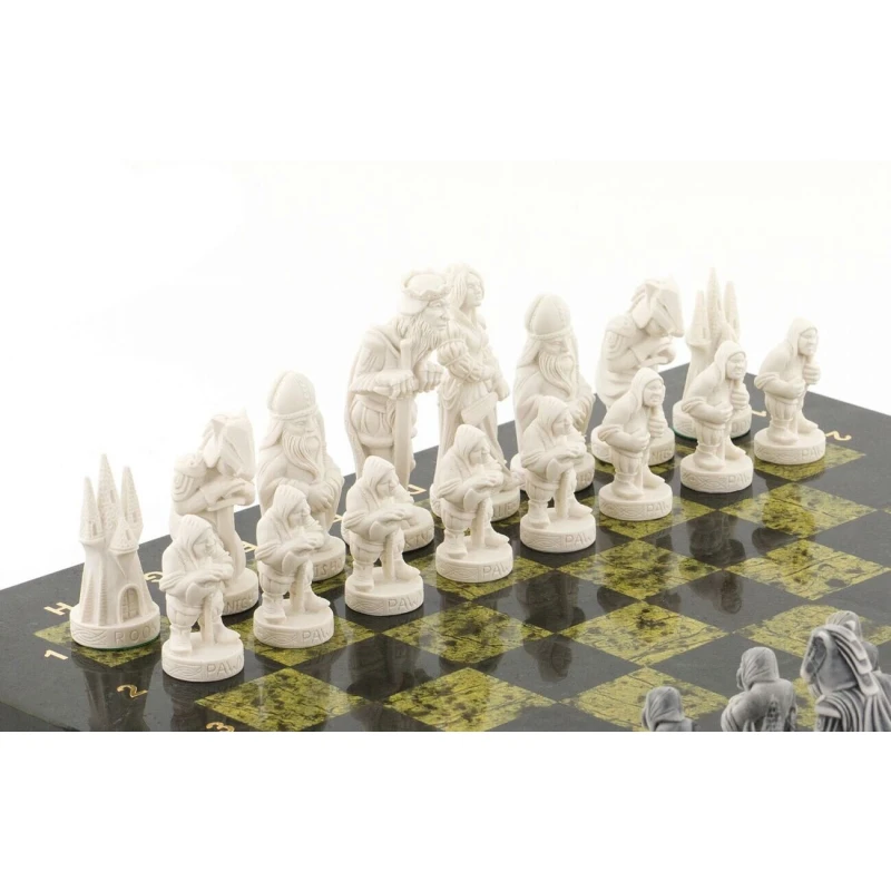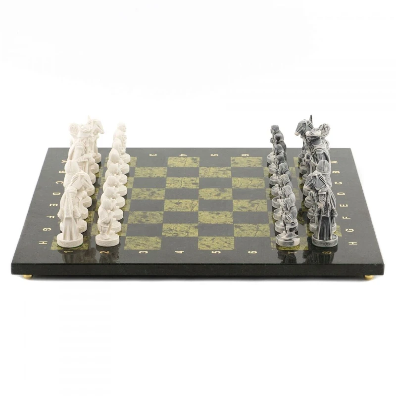 Подарочные шахматы "Средневековье" камень змеевик 40х40 см размером доска 40х40х2,5 см, клетка 4х4 см, высота фигур: пешка 5,2 см, король 9,5 см и весом 7500 г.