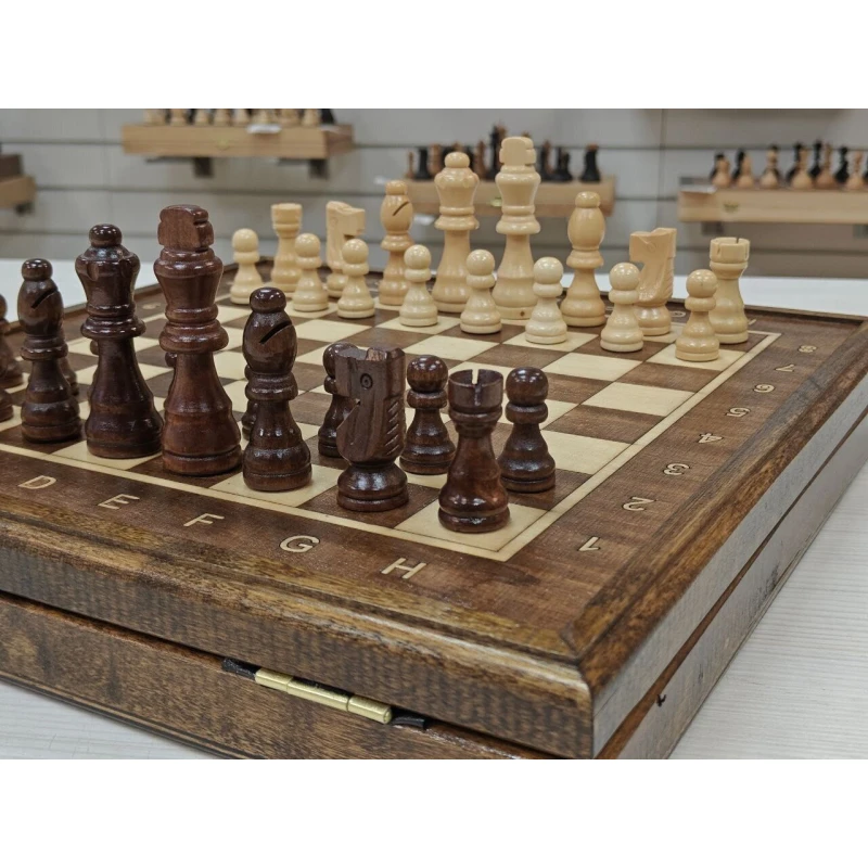 Шахматы подарочные в ларце из дуба с чехлом - это идеальный подарок для любителей настольных игр. Изготовленные вручную из натурального дерева, эти шахматы обладают исключительной прочностью и долговечностью. Каждая фигура вырезана с помощью резьбы и имеет уникальный дизайн.