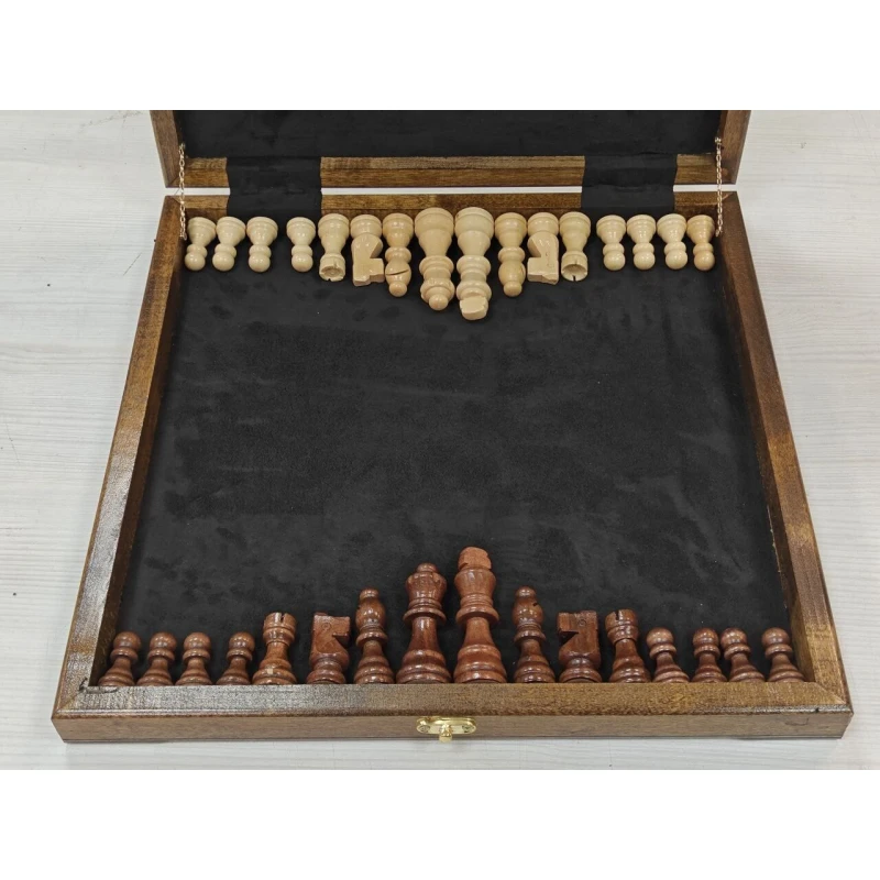 Шахматы подарочные в ларце из дуба с чехлом - это высококачественный и изысканный подарок, который порадует не только любителей шахмат, но и ценителей ручной работы и деревянных изделий.