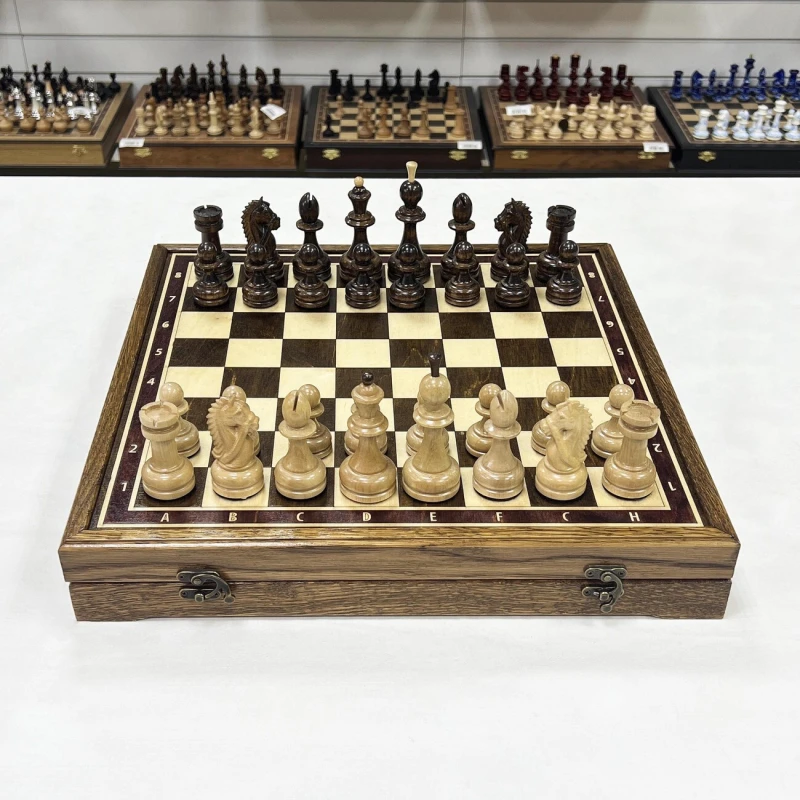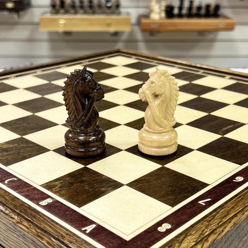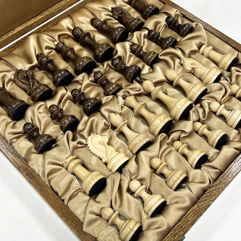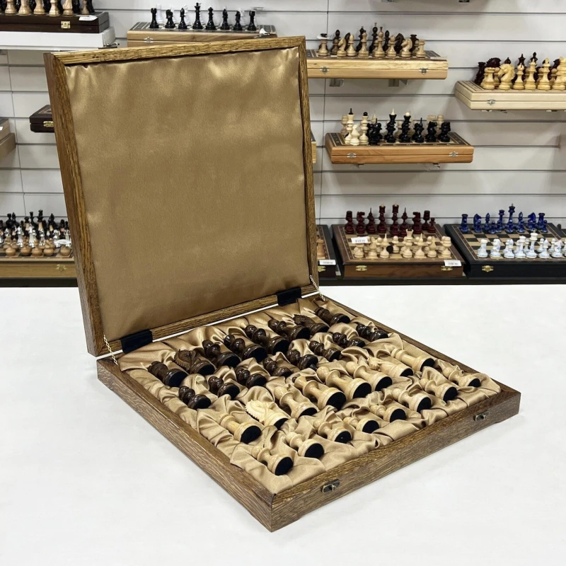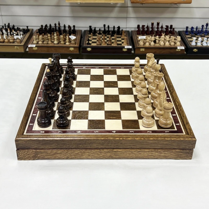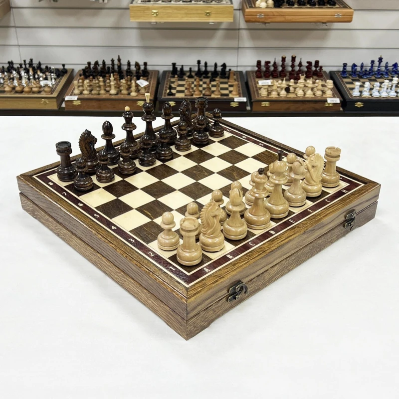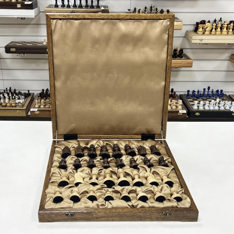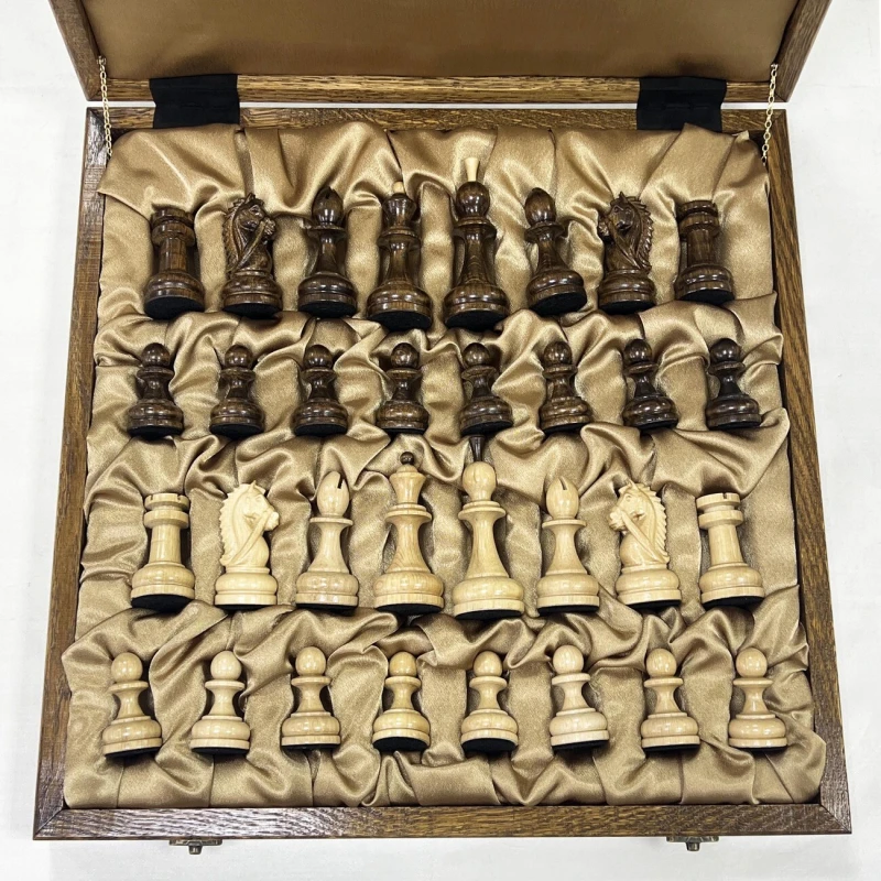 Купить деревянные шахматы, шахматы ручной работы, подарочные шахматы, шахматы из дуба, большие шахматы можно в наших магазинах в Москве и в Санкт Петербурге.