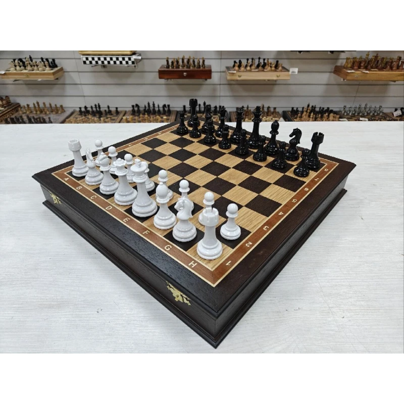 Купить классические шахматы, большие шахматы, деревянные шахматы, черно белые шахматы можно в наших магазинах в Москве и в Санкт Петербурге.