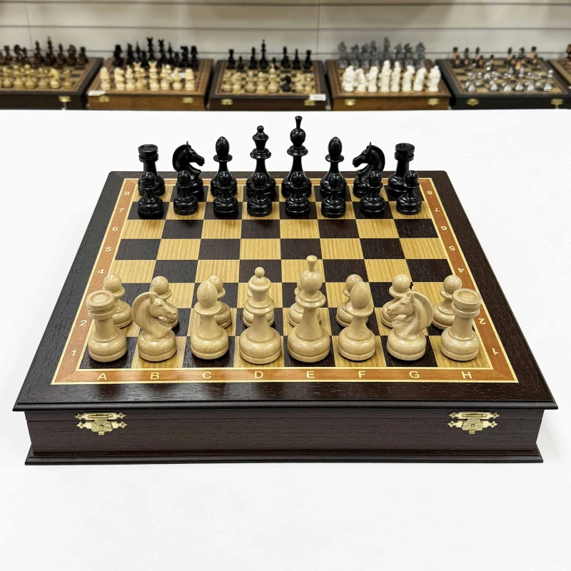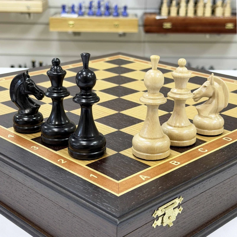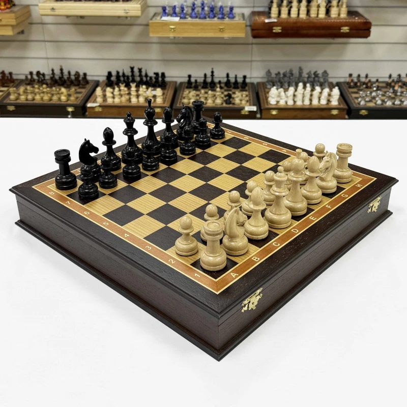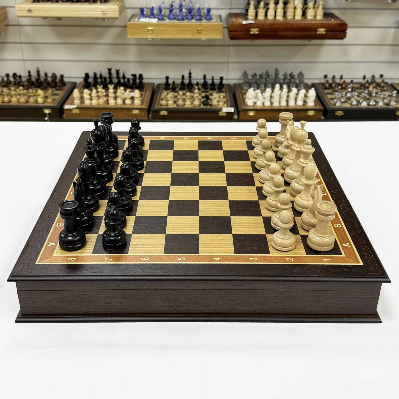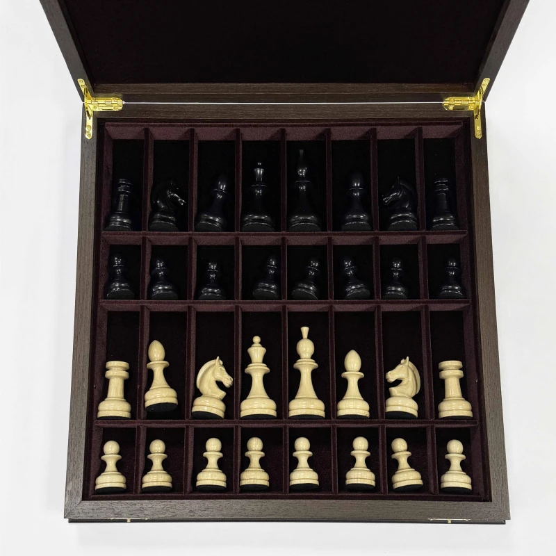 Шахматы подарочные в ларце Венге с утяжеленными фигурами премиум