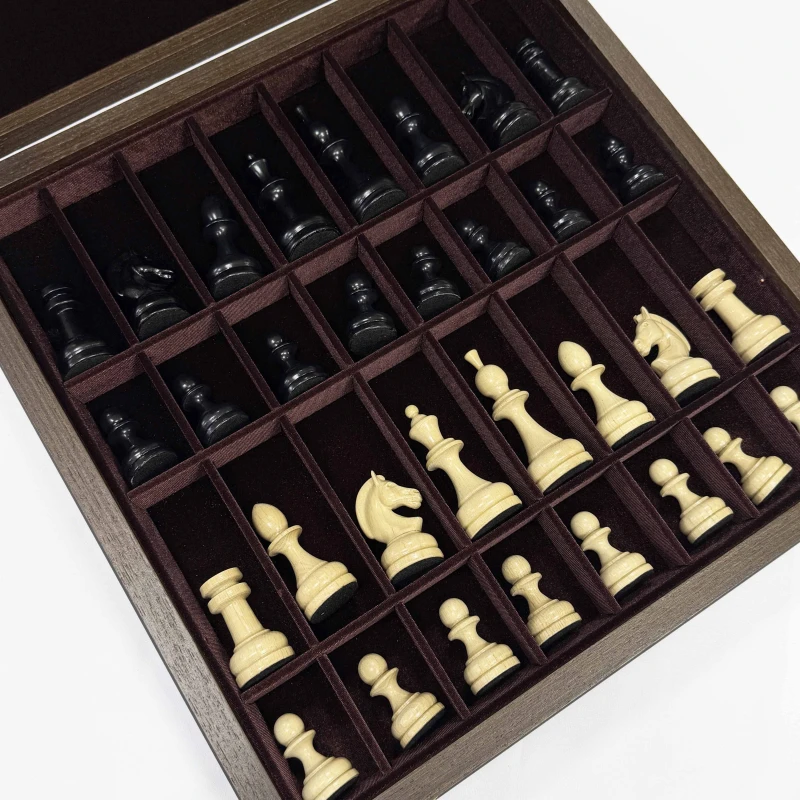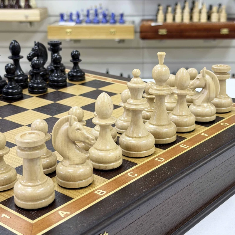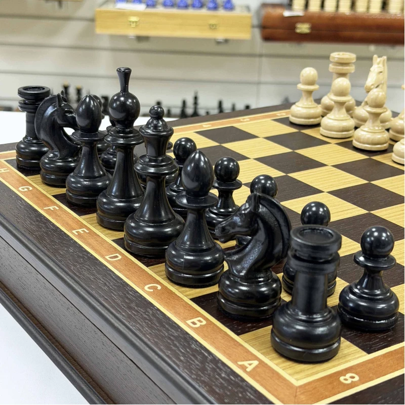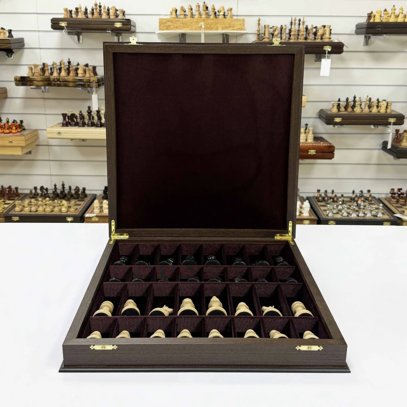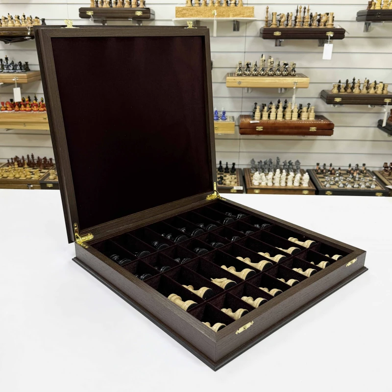 Шахматы подарочные в ларце Венге с утяжеленными фигурами премиум