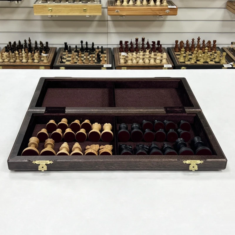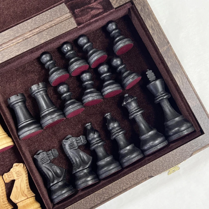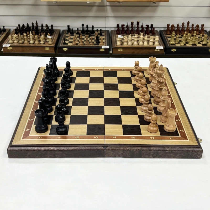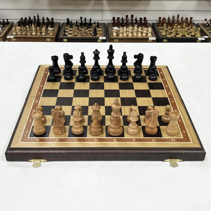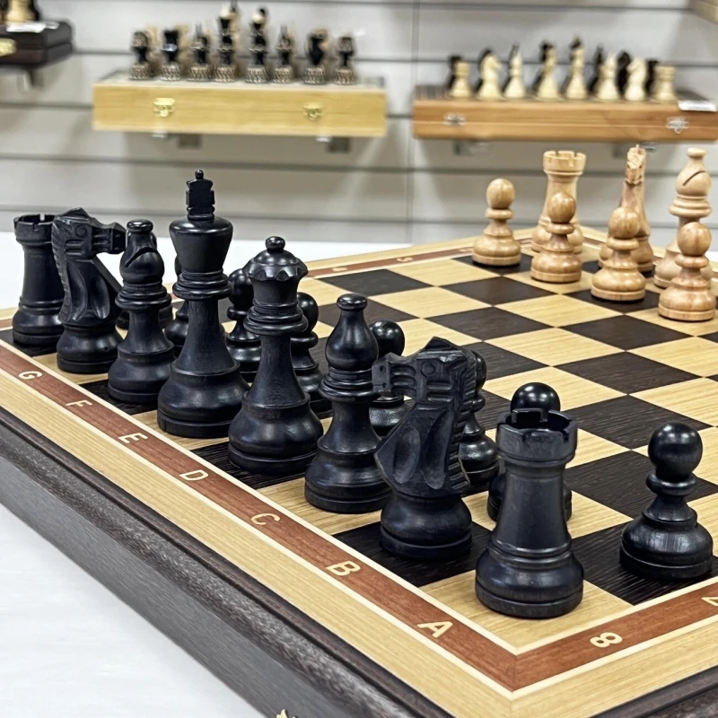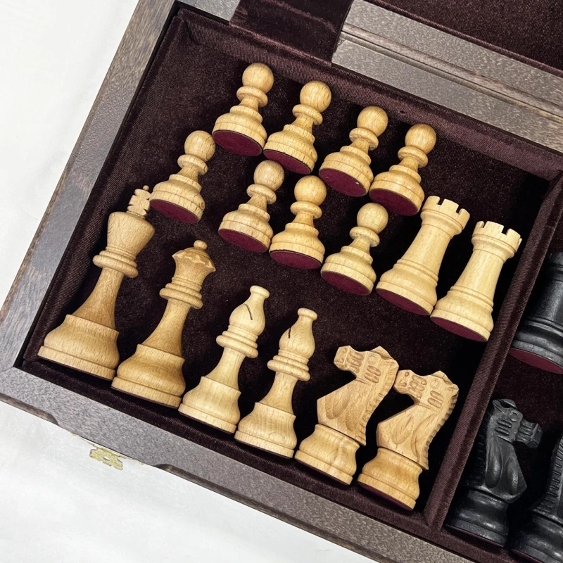 Подарочные шахматы с утяжеленными фигурами. Размер доски в разложенном виде 45 на 45 см. Высота короля 9.5 см. Высота пешки 4.5 см. В основании фигур есть подклейка, что бы не царапать доску. Шахматное поле выполнено в технике маркетри. Ручная работа. Материал фигур бук. Материал доски дуб, черное дерево, береза. Внутри доска покрыта бархатом. Петли закрыты бархатом. Доска закрывается на 2 замочка. Классический дизайн шахмат идеально подойдет в подарок для детей и взрослых. Форма шахматных фигур в стиле Стаунтон способствует удобной игре для профессионалов, так же для новичков. Размер клетки 4.5 см на 4.5 см.
