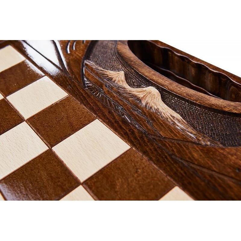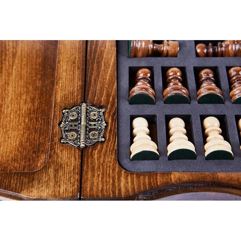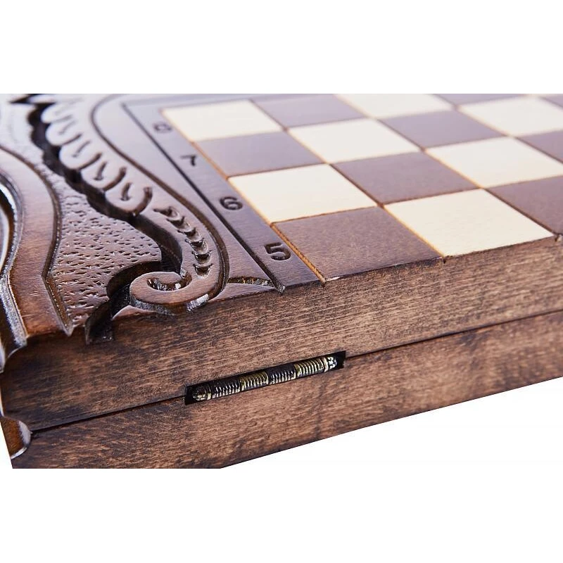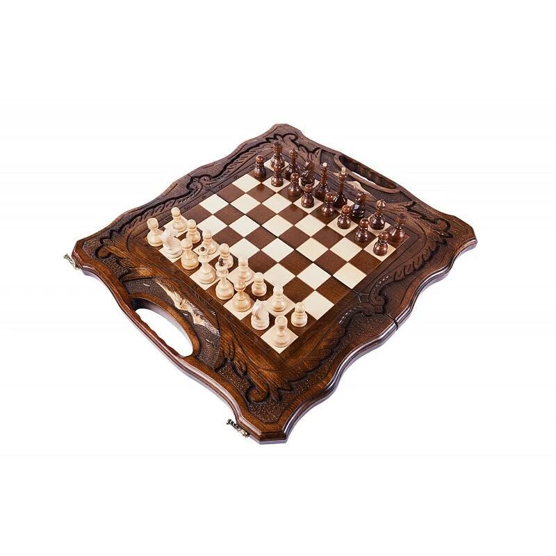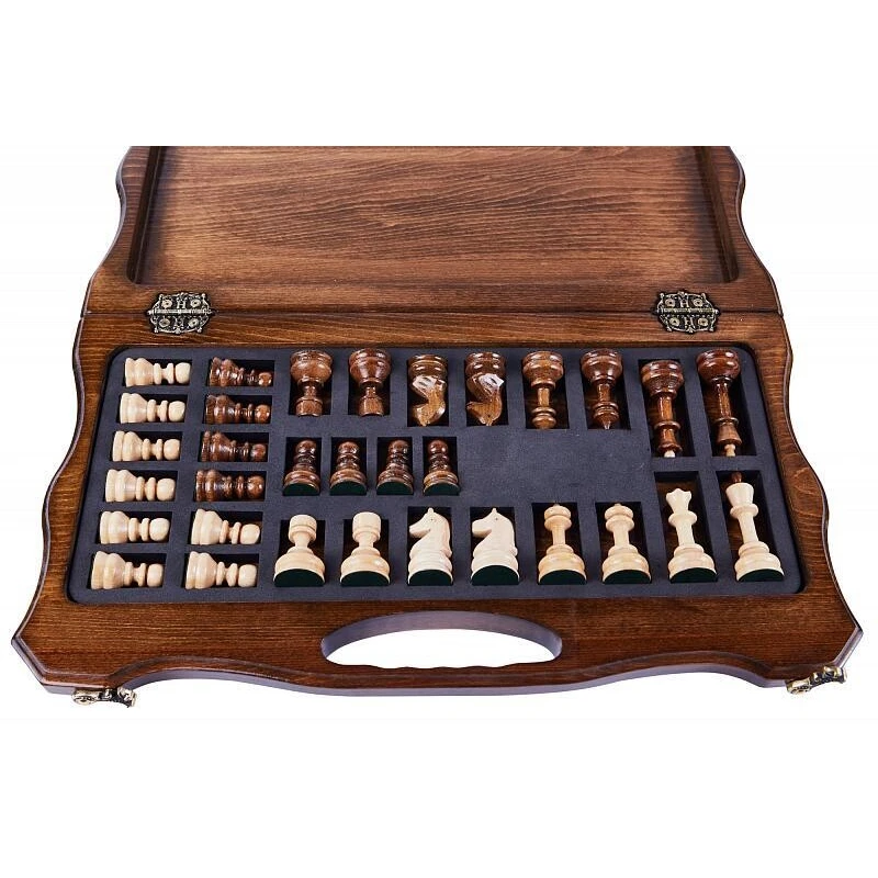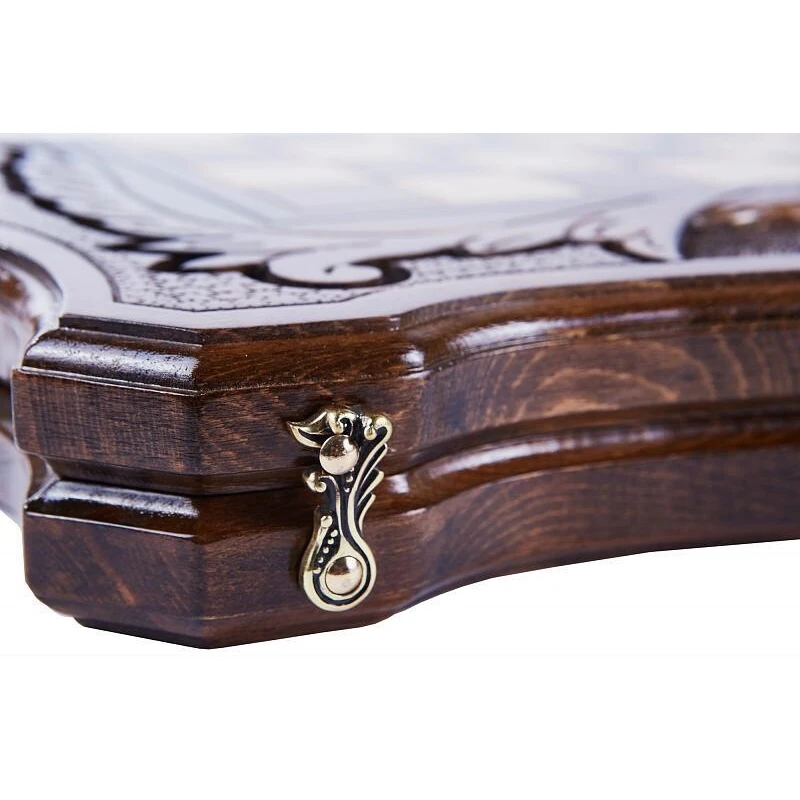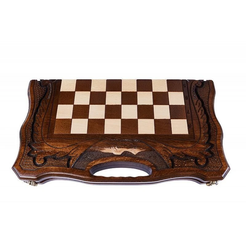 Резные шахматы «Арарат» с ручкой и ложементом – произведение искусства от известного армянского мастера. Выполненные из высококачественной натуральной буковой древесины, шахматы поражают детализацией и проработанностью каждого элемента. Фигуры, выполненные в классическом для шахмат стиле, имеют специальную подложку, предотвращающую царапание доски. Сама же доска складывается, держась на износостойких нержавеющих петлях. Удобство транспортировки обеспечивается наличием ручки, вырезанной в самой доске.