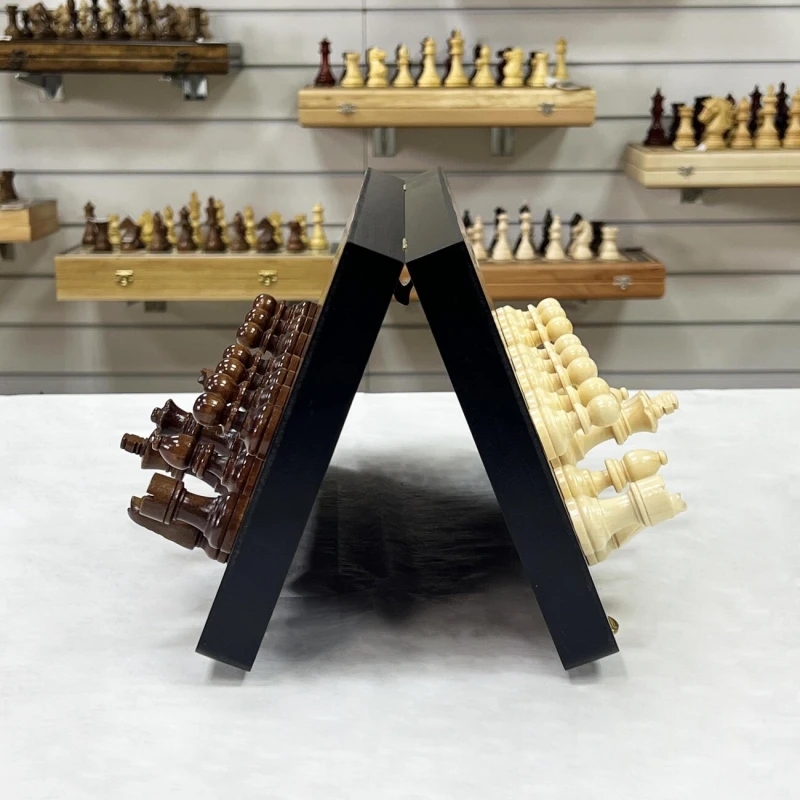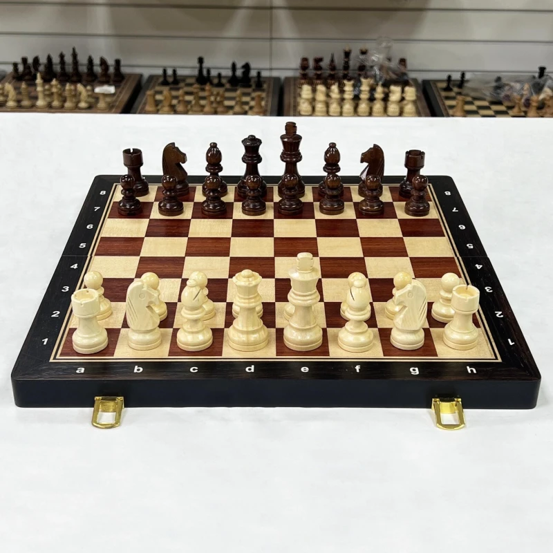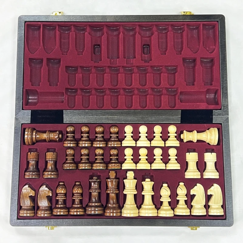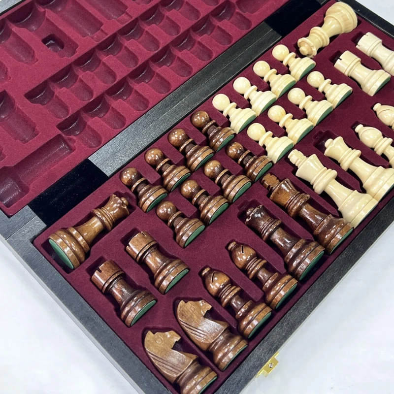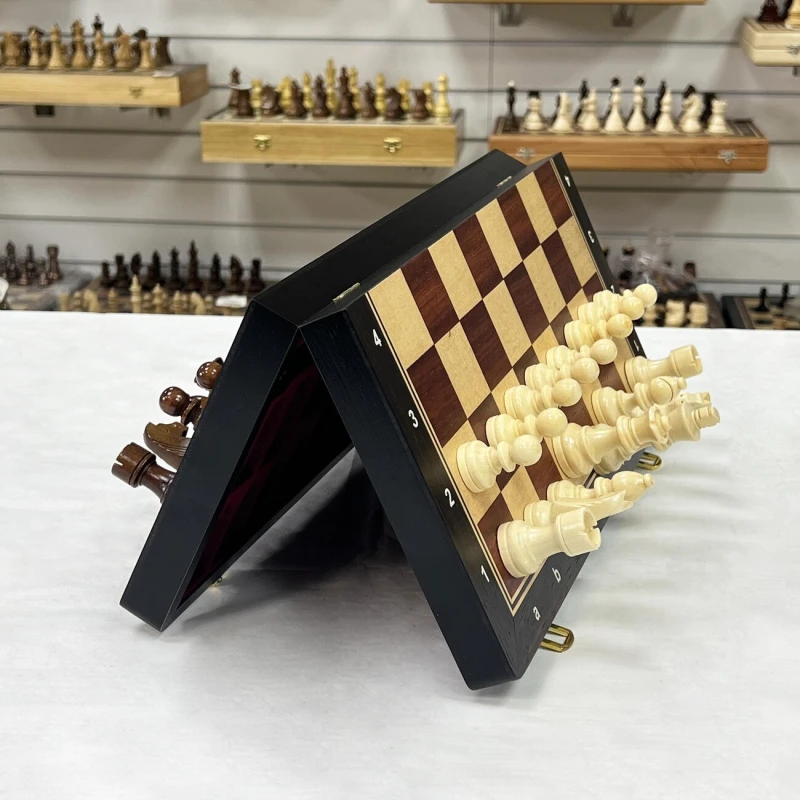 Магнитные шахматы с верхним слоем из шпона дерева станут великолепным дополнением для любителей стратегических игр. Размер доски в разложенном виде 38 на 38 см делает их компактными и удобными для игры как дома, так и в путешествиях. Внутри предусмотрен ложемент для каждой фигуры, что обеспечивает удобное хранение и защиту от потерь. Элегантный дизайн и качественные материалы придают шахматам стильный вид, а магнитные фигуры надежно фиксируются на доске, что гарантирует комфортную игру даже в условиях легкого движения. Эти шахматы не только функциональны, но и станут прекрасным элементом интерьера.