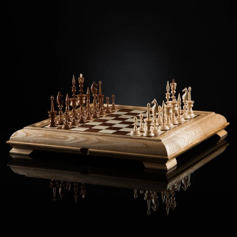 конструкция доски со съемной верхней крышкой, в нижней части доски сделаны ячейки для каждой фигурки