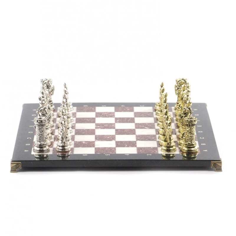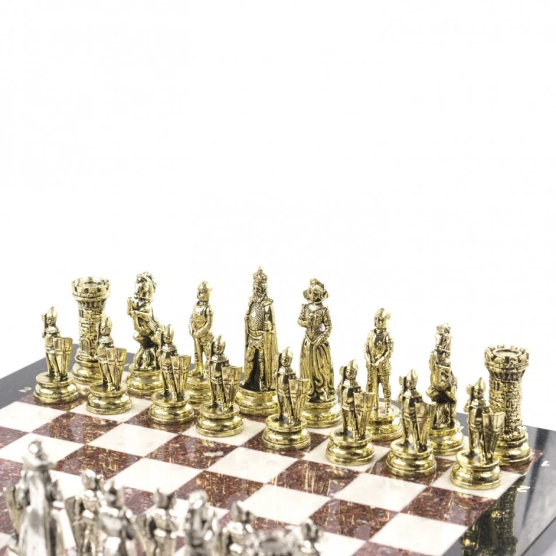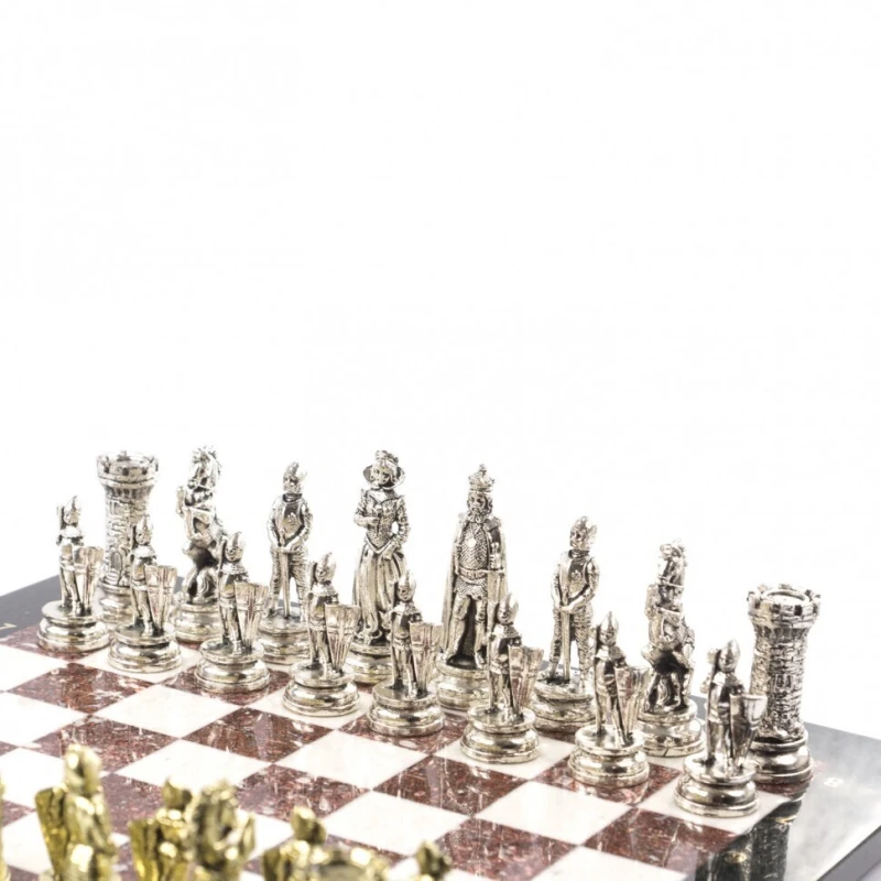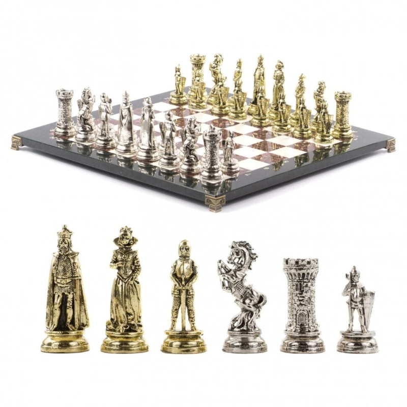 Эксклюзивные шахматы из камня и металла. Упакованы в транспортировочный чемодан. Размер доски 44 на 44 см. Материал доски креноид и мрамор.