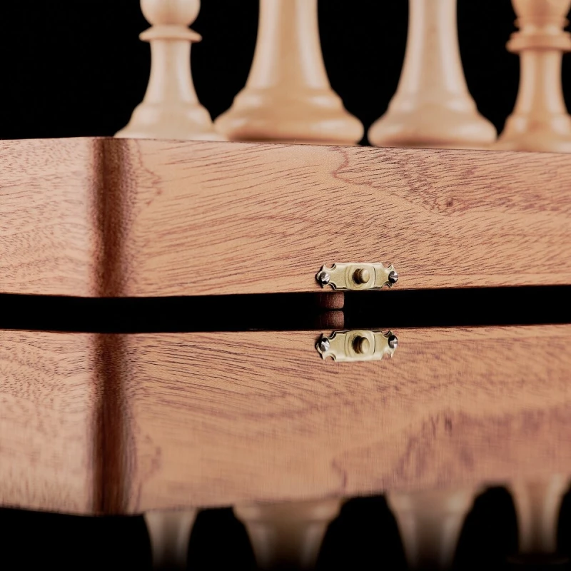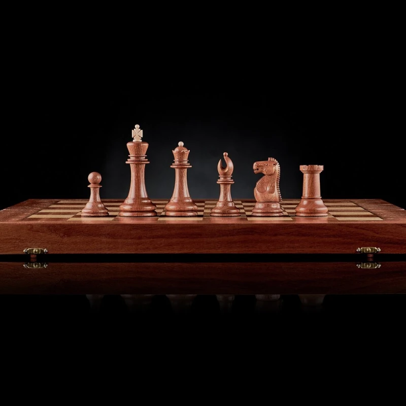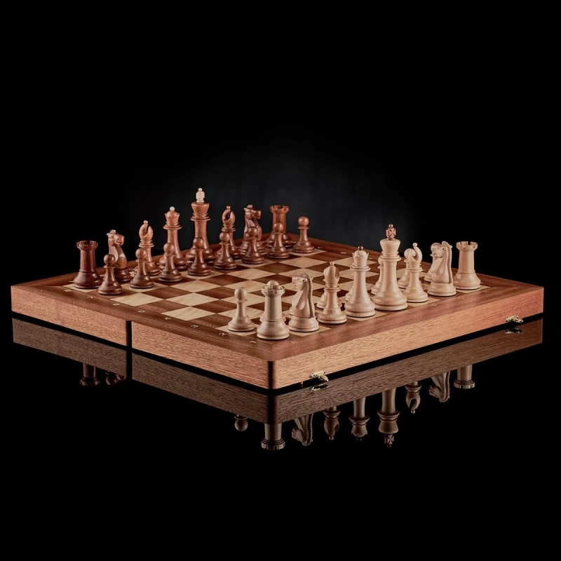 Эксклюзивные шахматы ручной работы в классическом стиле Стаунтон из ценных пород дерева. Размер доски 50 на 50 см. В собранном виде 50 на 25. Высота короля 10 см. Высота пешки 5 см. Доска сделана из массива африканского красного дерева. мягкий глубокий ложемент из бархата с ячейками для каждой фигуры; крышка открывается и удерживается в вертикальном положении петлями с ограничителем. Светлые фигуры из клена, темные фигуры сделаны из сапеле. Каждая фигурка с утяжелением и подклейкой. Внутри доски фигуры складываются в ячейки для хранения. Купить шахматы можно в наших магазинах в Москве и Санкт Петербурге, либо вы можете заказать доставку по всей России.