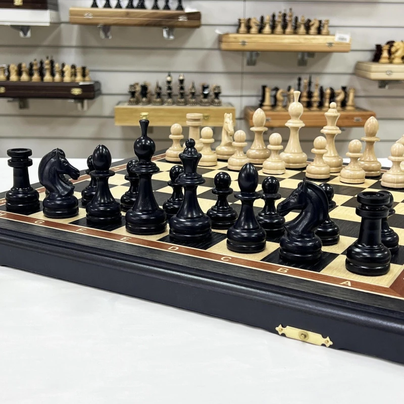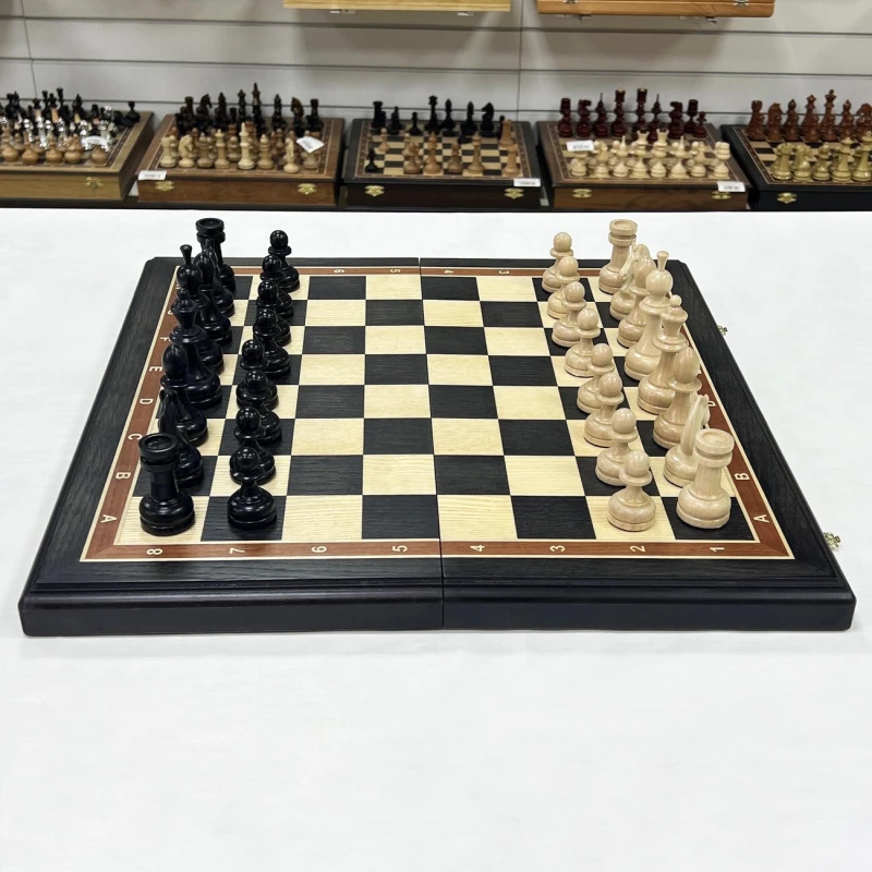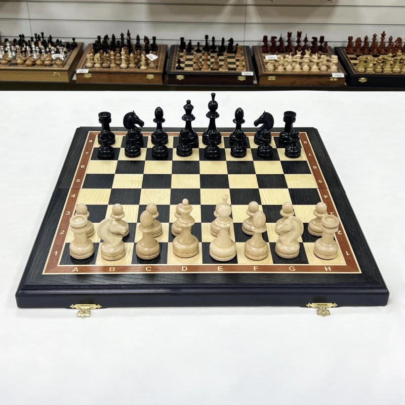 ✓Шахматное поле собирается вручную из моренного дуба и ясеня.