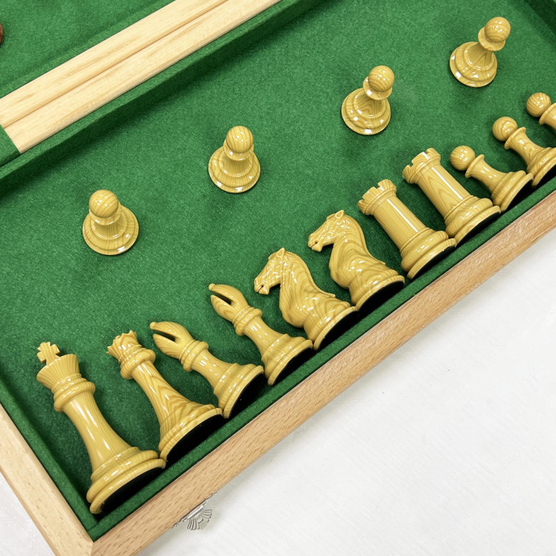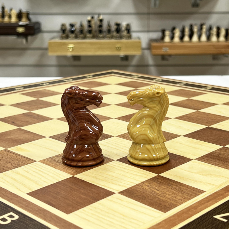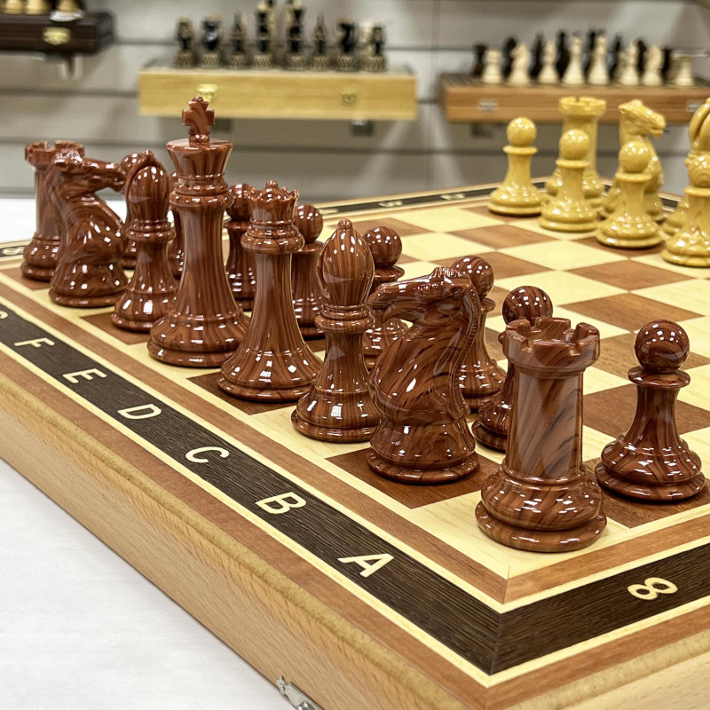 Доска сделана в технике маркетри из красного дерева и ясеня