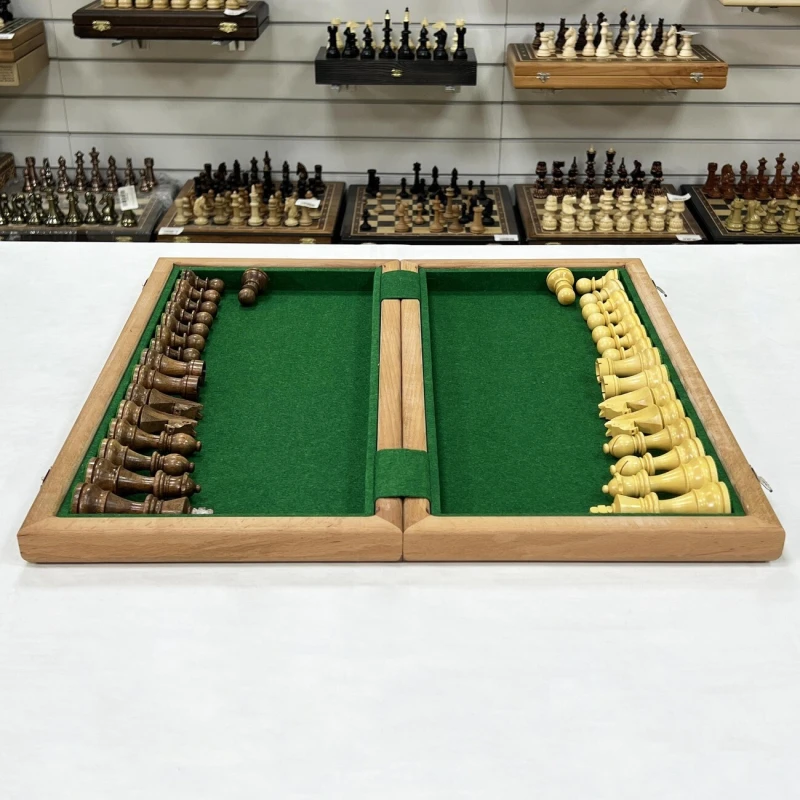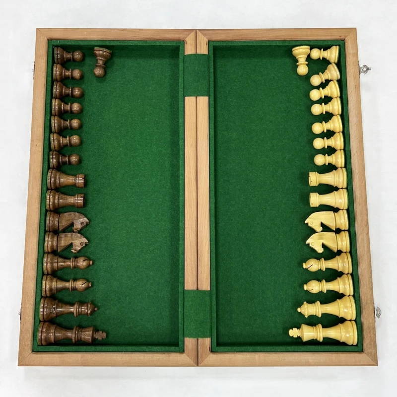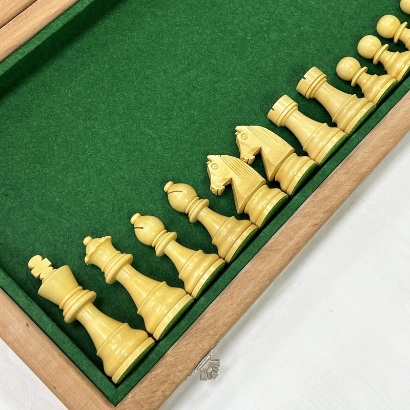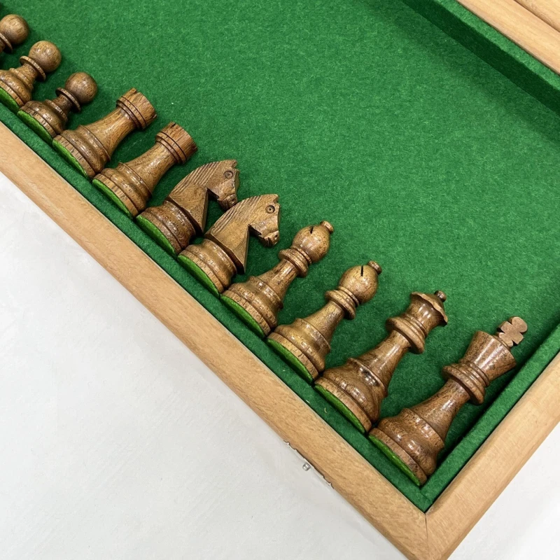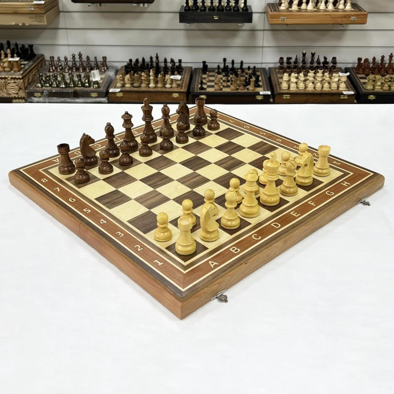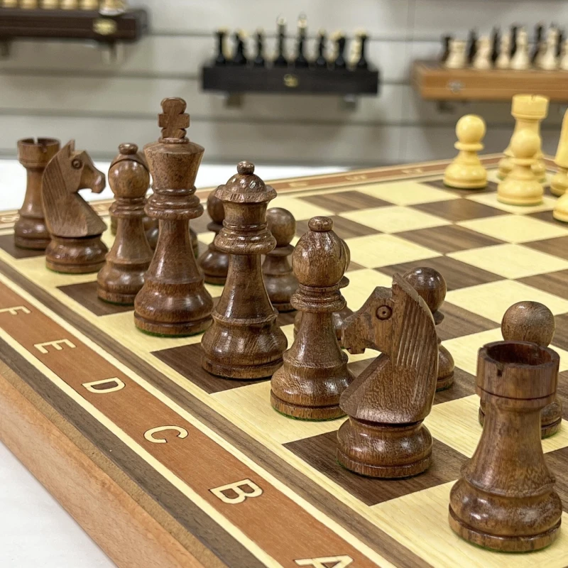 В комплекте с доской идут турнирные шахматные фигуры, изготовленные вручную индийским мастером из ценных пород дерева. Эти фигуры, отличающиеся высоким качеством исполнения, изысканным дизайном и сбалансированным весом, часто используются на престижных шахматных чемпионатах. Размер короля - 9.5 см, размер пешки - 4.5 см. Тщательно подобранные породы дерева подчеркивают уникальность каждой фигуры, а мастерство индийского мастера придает им неповторимый характер. Этот шахматный набор – идеальный подарок для ценителей интеллектуальной игры, изысканных вещей и ручной работы, способный украсить любой интерьер и стать центром внимания в любой компании.